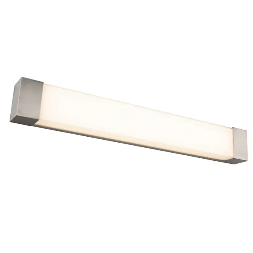 Look at your beautiful reflection in the mirror with the Darcy LED Vanity Light from dweLED, highlighting your alluring features. Every side of your mirror is a perfect candidate for this geometrically based design. The cool rectangular form feels distinct at metal end caps punch through with a sleek metallic quality. The piece mellows out elegantly thanks to a mitered glass diffuser. Experience a bountiful aura of glare-free illumination as its LEDs penetrate the milky shade.