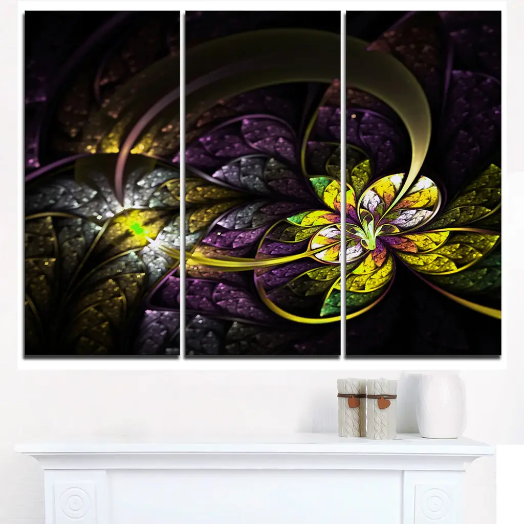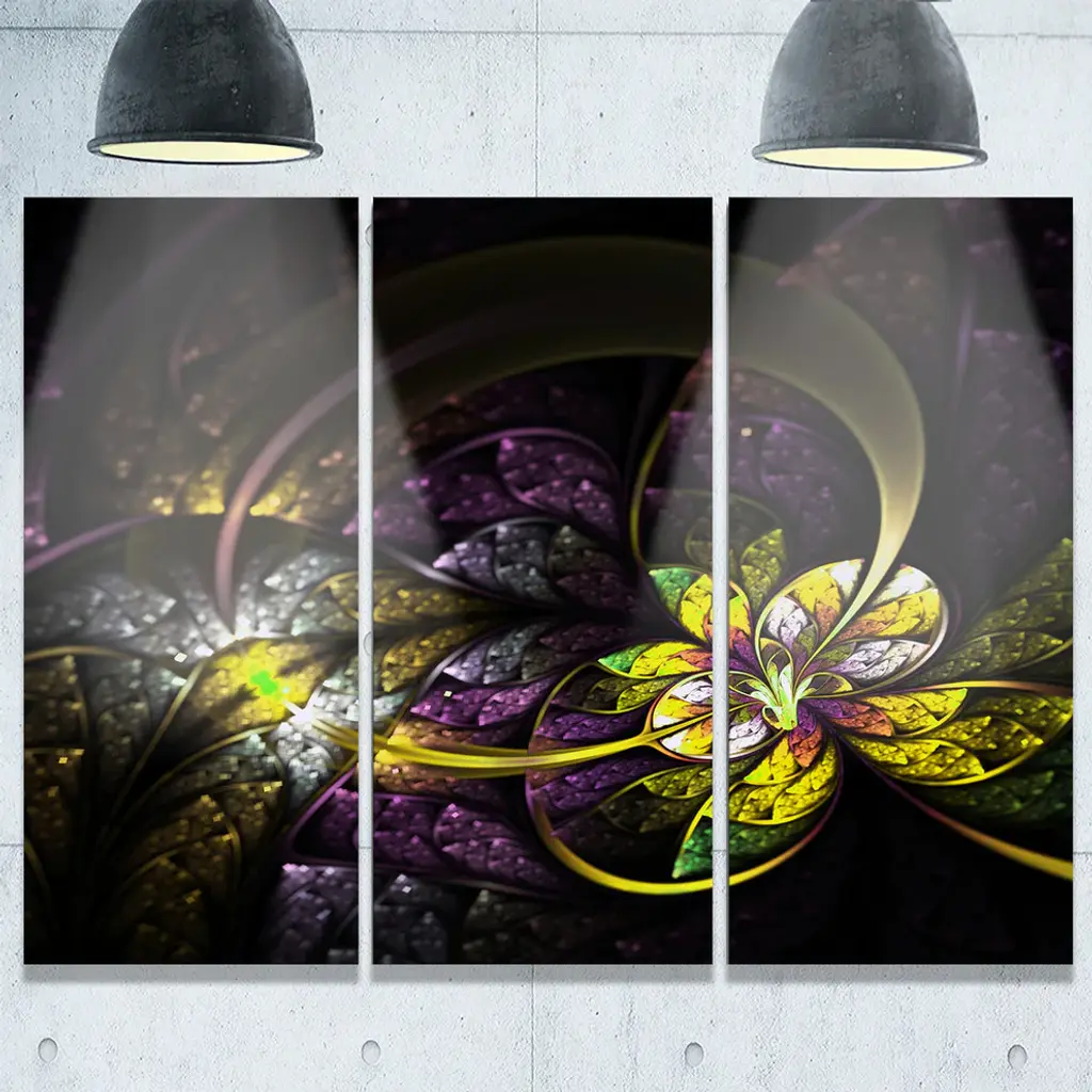 "Dark Alien Digital Art Fractal Flower" Metal Wall Art, 3 Panels, 36"x28"