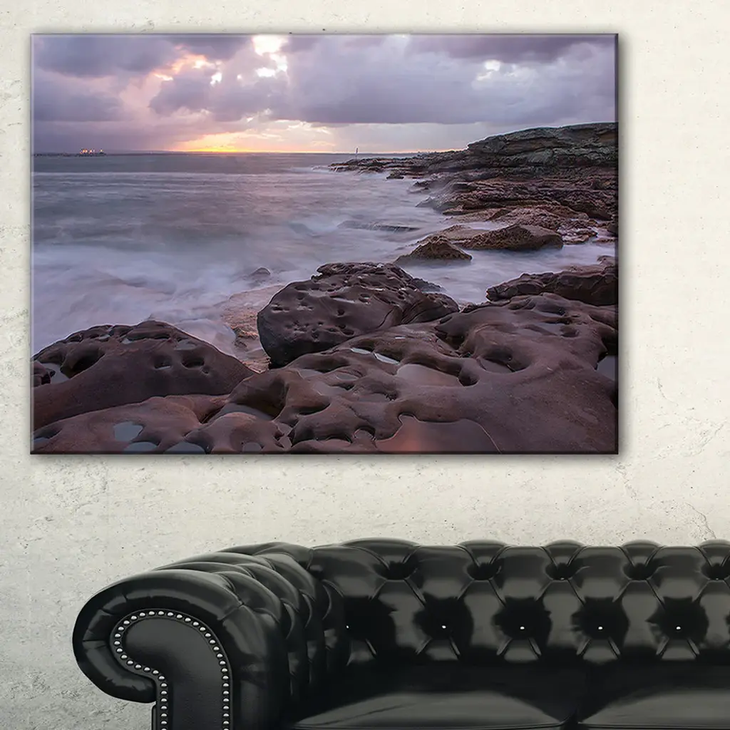 The Dark Australian Seashore with Large Rocks canvas art print is sure to make an impression on anyone who sees it. This artwork is gallery wrapped around a 1-inch solid wood frame and arrives carefully packaged and entirely ready to hang on the wall. Design Art only uses the highest resolution and pigments to ensure a crisp colorful print that is never faded or pixelated. This artwork is sure to be a conversation starter in any home or office.
