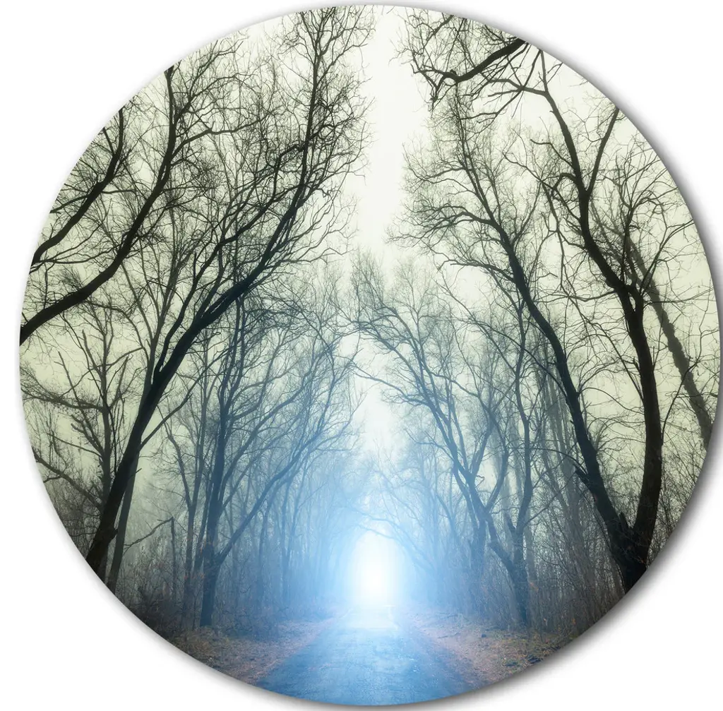 Bring Contemporary Abstraction to your home with this large Circle Metal wall art. This Dark Autumn Forest in Fog Metal Artwork makes it the focal point of any room or office. - White Gloss Coating ensures colors are extra vibrant with light reflection.- Aluminum grade Sheet Metal with 1 inch mounting frame on the back giving the illusion that the artwork is floating on the wall..- Mounting Brackets are included along with instructions.- High Quality Digital images are created directly into a glossy aluminum panel producing a stunning and captivating print into the glossy finish of the metal.- Water, Fire and Scratch resistant HD Aluminum panels.- Looks better than any photo paper and guaranteed to last at least 20 years- Easy to clean with a microfiber cloth. Colors are far superior to regular Canvas Art. - Easy to Hang