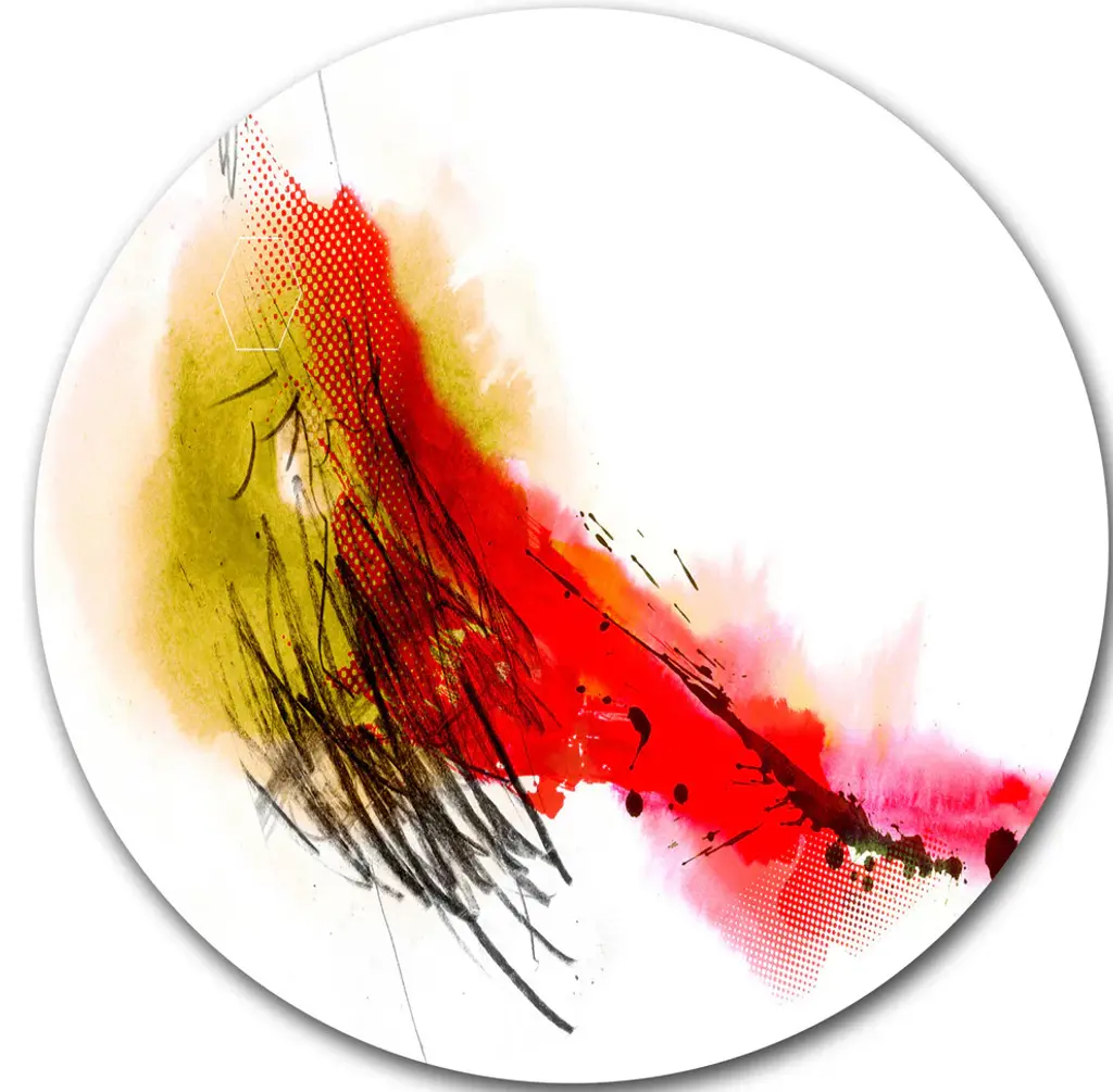 Bring Contemporary Abstraction to your home with this large Circle Metal wall art. This Dark Blue Multicolor Stain Metal Artwork makes it the focal point of any room or office. - White Gloss Coating ensures colors are extra vibrant with light reflection.- Aluminum grade Sheet Metal with 1 inch mounting frame on the back giving the illusion that the artwork is floating on the wall..- Mounting Brackets are included along with instructions.- High Quality Digital images are created directly into a glossy aluminum panel producing a stunning and captivating print into the glossy finish of the metal.- Water, Fire and Scratch resistant HD Aluminum panels.- Looks better than any photo paper and guaranteed to last at least 20 years- Easy to clean with a microfiber cloth. Colors are far superior to regular Canvas Art. - Easy to Hang