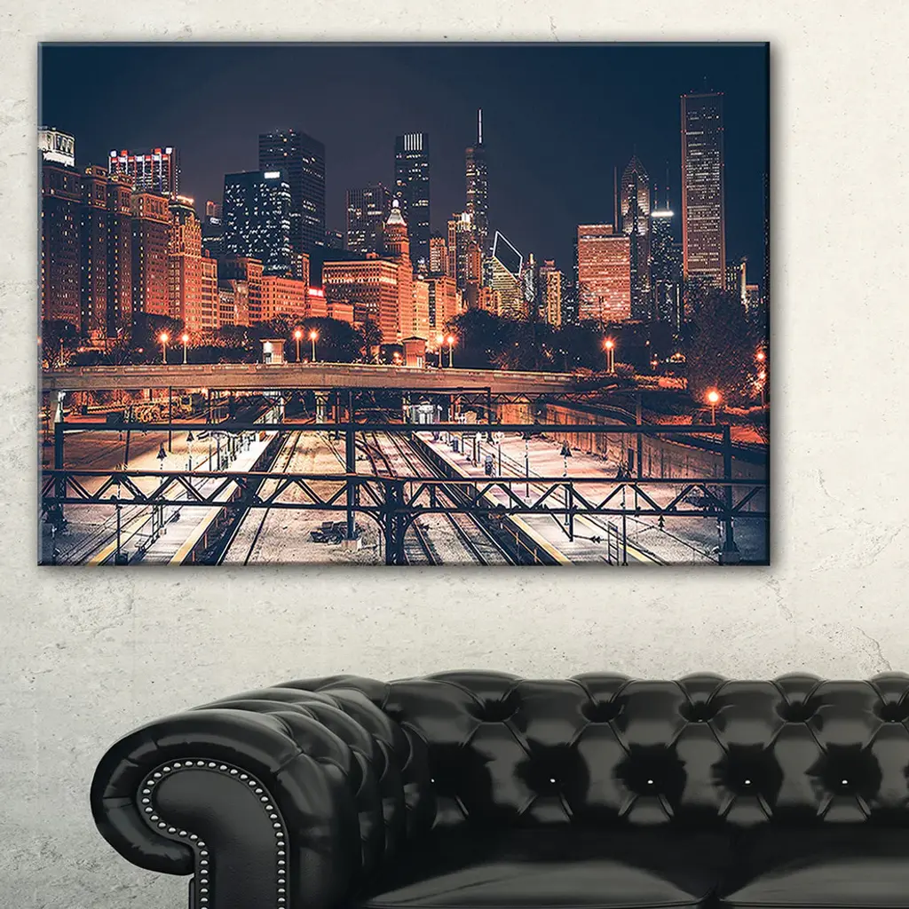 "Dark Chicago Skyline And Railroad" Canvas Print40"x20"