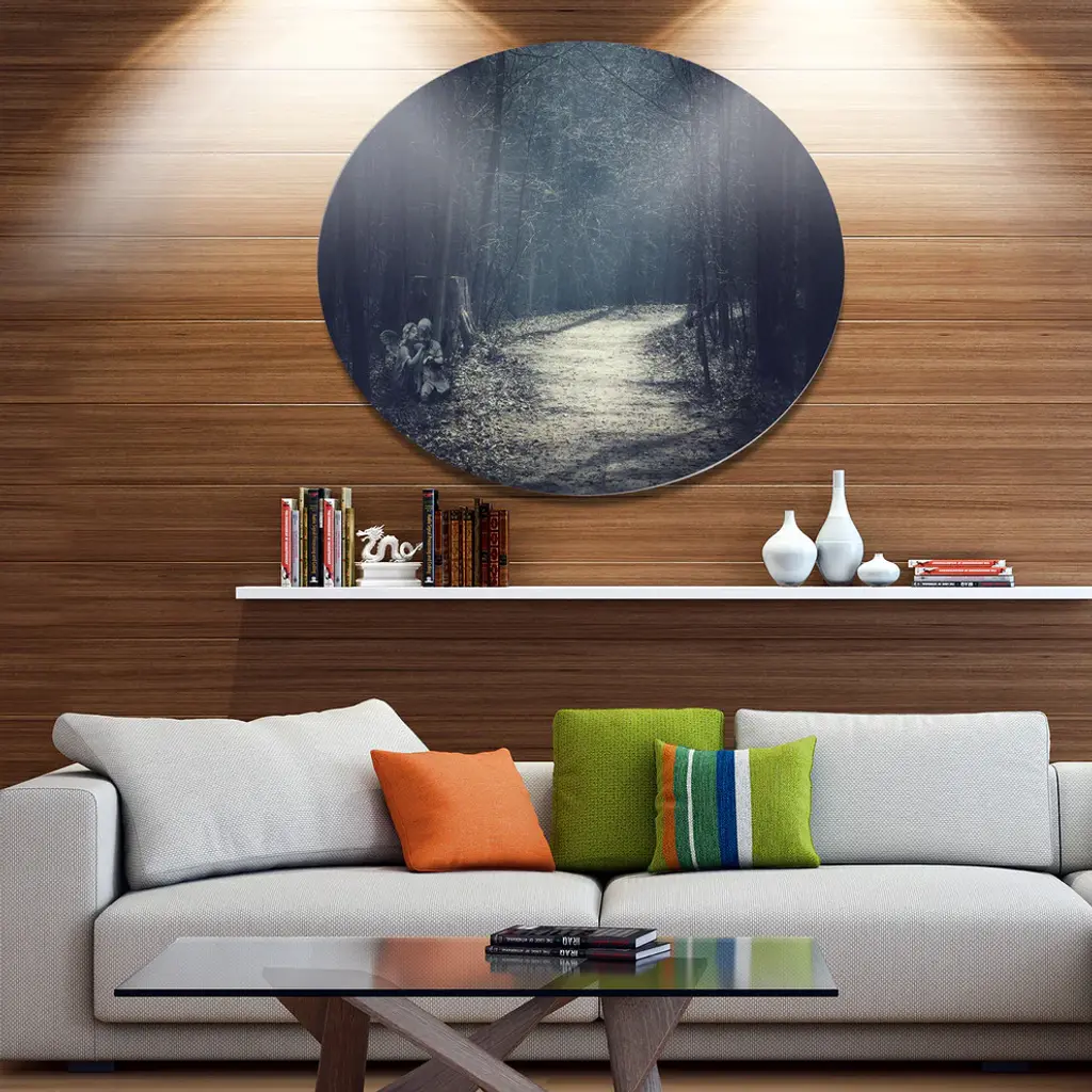 Bring Contemporary Abstraction to your home with this large Circle Metal wall art. This Dark Forest With Empty Road Metal Artwork makes it the focal point of any room or office. - White Gloss Coating ensures colors are extra vibrant with light reflection.- Aluminum grade Sheet Metal with 1 inch mounting frame on the back giving the illusion that the artwork is floating on the wall..- Mounting Brackets are included along with instructions.- High Quality Digital images are created directly into a glossy aluminum panel producing a stunning and captivating print into the glossy finish of the metal.- Water, Fire and Scratch resistant HD Aluminum panels.- Looks better than any photo paper and guaranteed to last at least 20 years- Easy to clean with a microfiber cloth. Colors are far superior to regular Canvas Art. - Easy to Hang