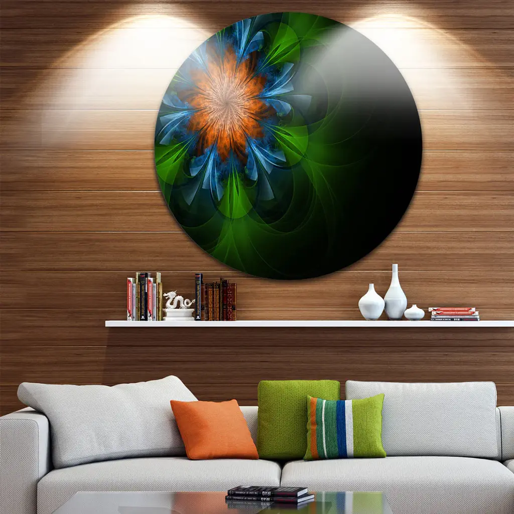 Bring Contemporary Abstraction to your home with this large Circle Metal wall art. This Dark Green Fractal Flower in Black Metal Artwork makes it the focal point of any room or office. - White Gloss Coating ensures colors are extra vibrant with light reflection.- Aluminum grade Sheet Metal with 1 inch mounting frame on the back giving the illusion that the artwork is floating on the wall..- Mounting Brackets are included along with instructions.- High Quality Digital images are created directly into a glossy aluminum panel producing a stunning and captivating print into the glossy finish of the metal.- Water, Fire and Scratch resistant HD Aluminum panels.- Looks better than any photo paper and guaranteed to last at least 20 years- Easy to clean with a microfiber cloth. Colors are far superior to regular Canvas Art. - Easy to Hang