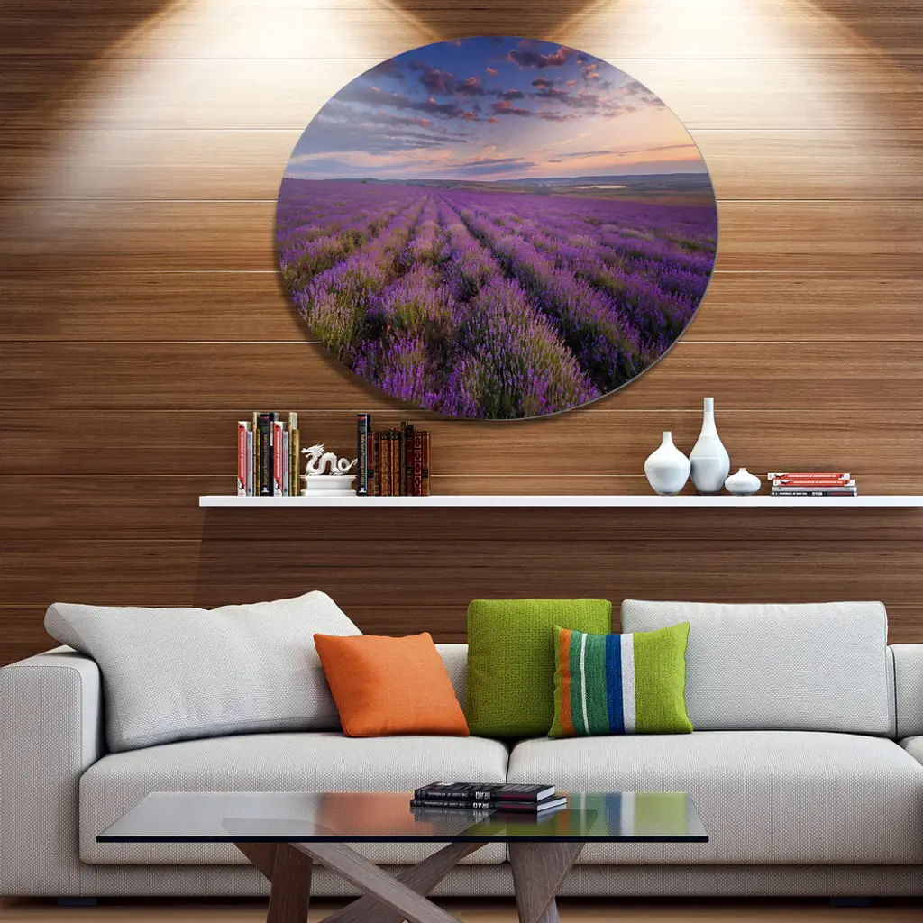 Dark Lavender Field With Cloudy Sky, Floral Round Wall Art, 36"
