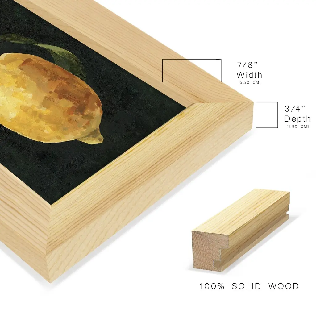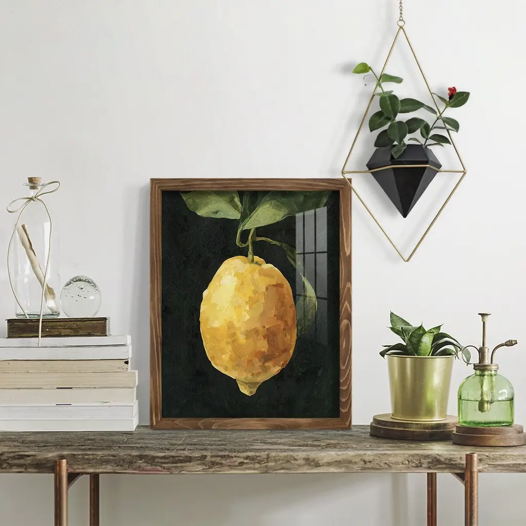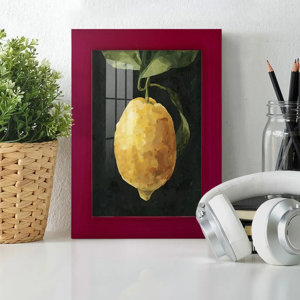 Dark Lemon I -EZ SWITCH Framed Print w/glass-Cherry Red A delightful, framed print. Featuring a solid wood frame with real wood glass. This premium print is giclee quality. In addition, every frame features a removable back and table top stand. This allows you to change your art in the future or to just stand the art on a table for a new look. We are sure you'll enjoy our new series of EZ SWITCH Framed Art. Solid Wood Frame Real Glass Removable / Replaceable Art Built in Tabletop Stand Sizes range from 4x6 up to 12x15 - buy just one or pair them up as sets as you see fit.