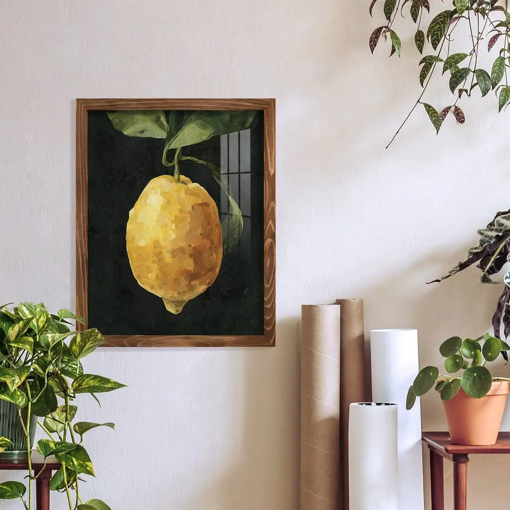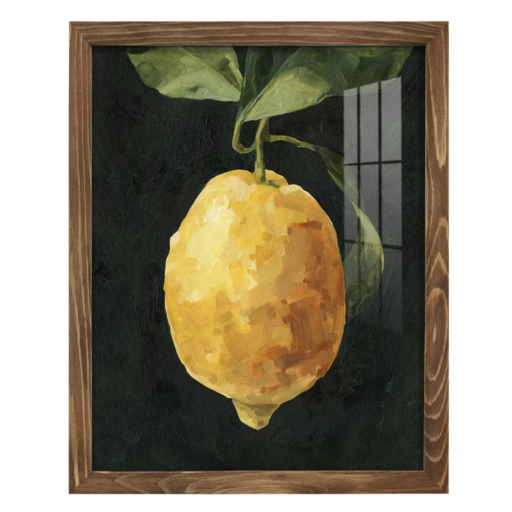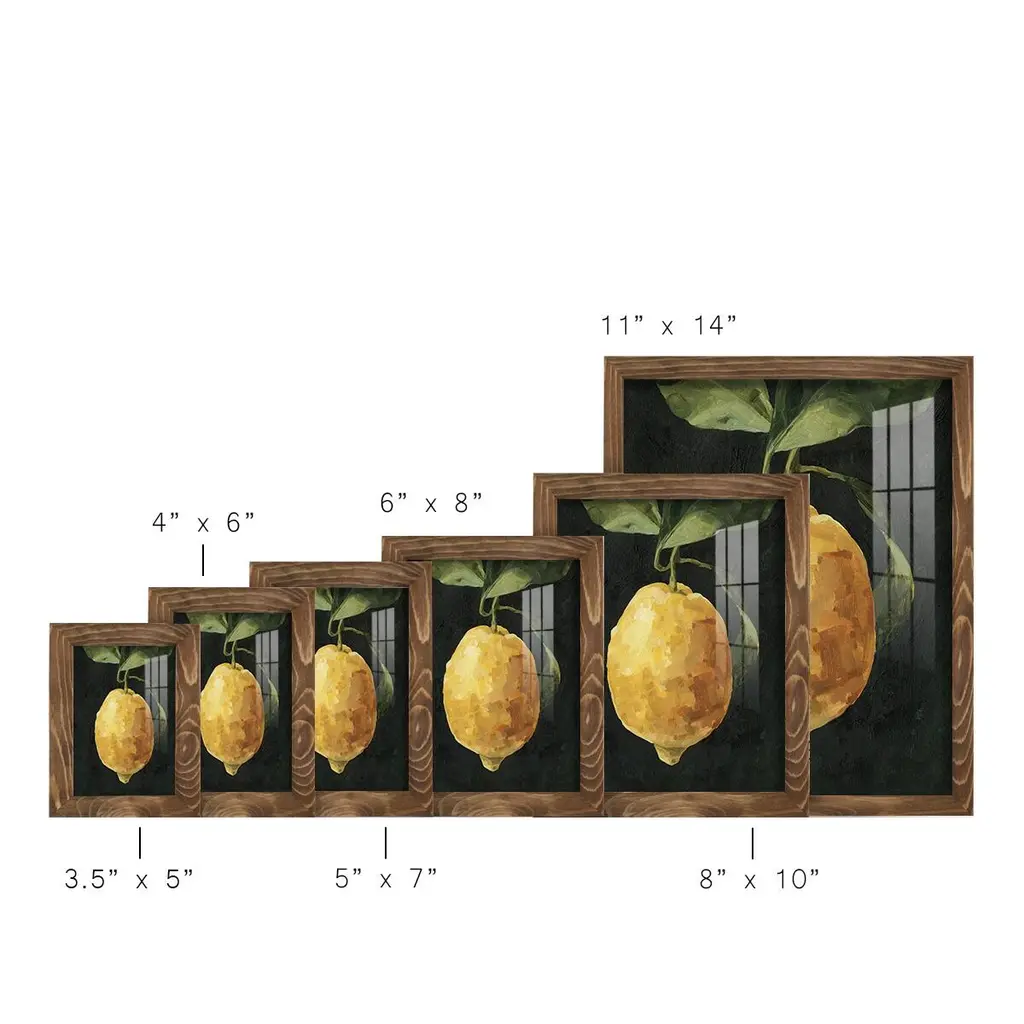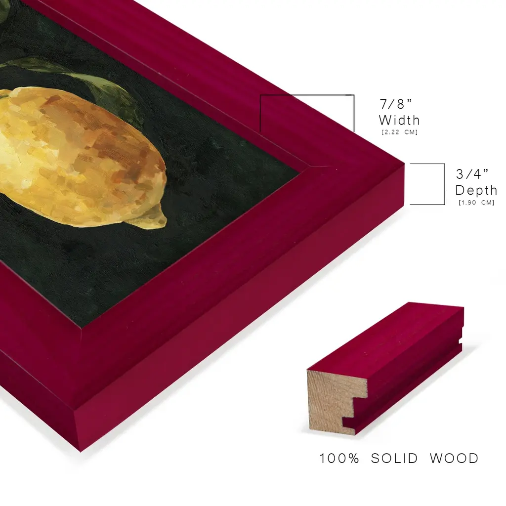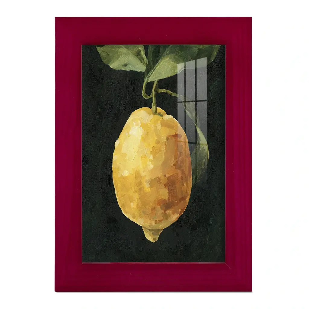 Dark Lemon I -EZ SWITCH Framed Print w/glass-Cherry Red A delightful, framed print. Featuring a solid wood frame with real wood glass. This premium print is giclee quality. In addition, every frame features a removable back and table top stand. This allows you to change your art in the future or to just stand the art on a table for a new look. We are sure you'll enjoy our new series of EZ SWITCH Framed Art. Solid Wood Frame Real Glass Removable / Replaceable Art Built in Tabletop Stand Sizes range from 4x6 up to 12x15 - buy just one or pair them up as sets as you see fit.
