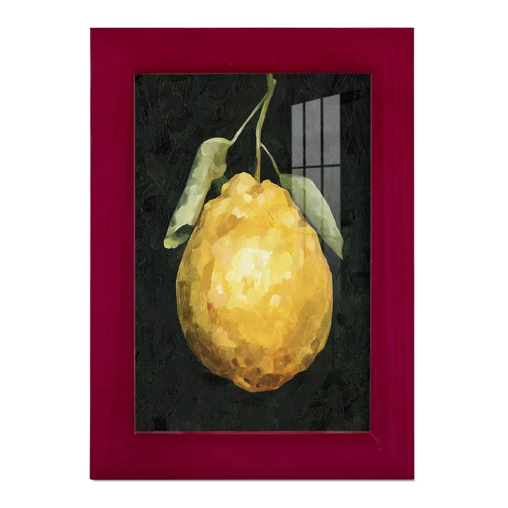 Dark Lemon II -EZ SWITCH Framed Print w/glass-Cherry Red A delightful, framed print. Featuring a solid wood frame with real wood glass. This premium print is giclee quality. In addition, every frame features a removable back and table top stand. This allows you to change your art in the future or to just stand the art on a table for a new look. We are sure you'll enjoy our new series of EZ SWITCH Framed Art. Solid Wood Frame Real Glass Removable / Replaceable Art Built in Tabletop Stand Sizes range from 4x6 up to 12x15 - buy just one or pair them up as sets as you see fit.