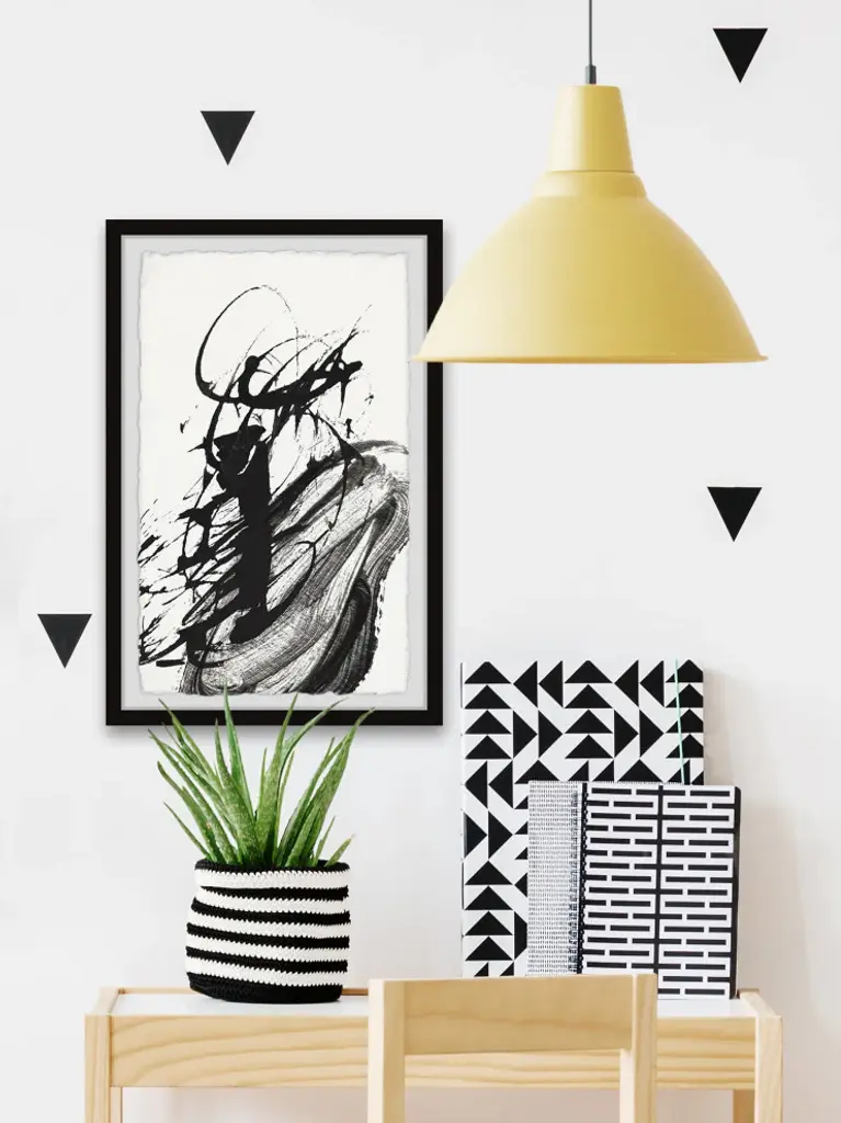Bold and eye-catching, this acrylic painting print features a black and white abstract design that showcases overlapping splatters of paint. Proudly printed in the USA, this piece is printed on high quality archive paper and professionally hand-framed. With wall-mounting hooks included, this artful accent is ready to hang up as soon as it reaches your front door.- Top quality Giclee print on high resolution Archive Paper- Hand cut deckled edges- High quality durable non-warping frame- Finished under shatter resistant plexiglass- Arrives ready to hang- Includes a certificate of authenticity- Printed in the USA