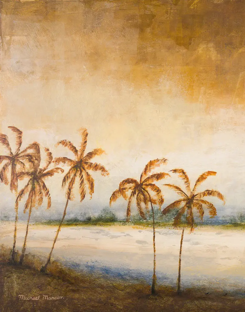 "Dark Palms At Sunset" Metal Wall Art, 3 Panels, 36"x28"