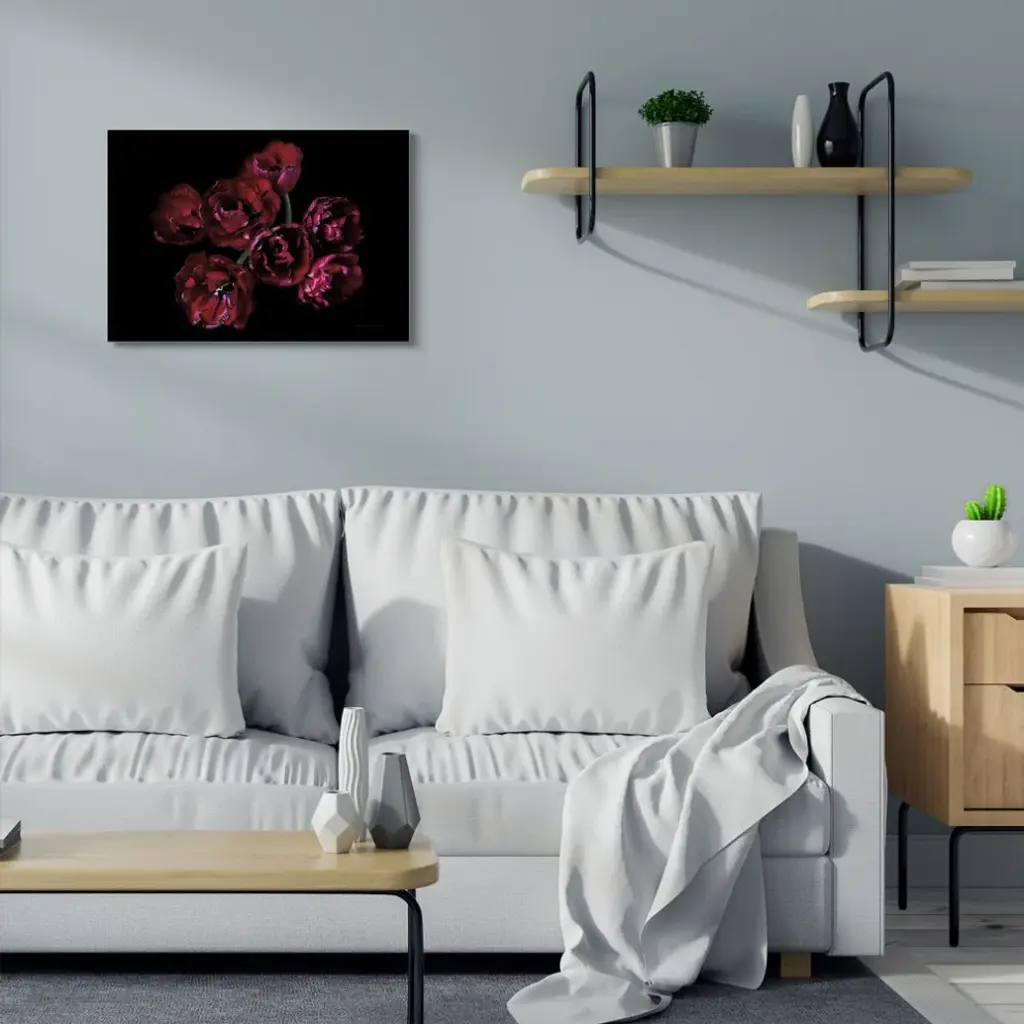 Dark Peonies Floral Bouquet Red Black Photograph,1pc, Each 24 X 30