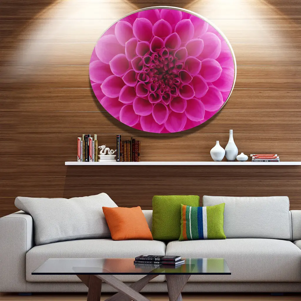 Bring Contemporary Abstraction to your home with this large Circle Metal wall art. This Dark Pink Abstract Flower Petals Metal Artwork makes it the focal point of any room or office. - White Gloss Coating ensures colors are extra vibrant with light reflection.- Aluminum grade Sheet Metal with 1 inch mounting frame on the back giving the illusion that the artwork is floating on the wall..- Mounting Brackets are included along with instructions.- High Quality Digital images are created directly into a glossy aluminum panel producing a stunning and captivating print into the glossy finish of the metal.- Water, Fire and Scratch resistant HD Aluminum panels.- Looks better than any photo paper and guaranteed to last at least 20 years- Easy to clean with a microfiber cloth. Colors are far superior to regular Canvas Art. - Easy to Hang