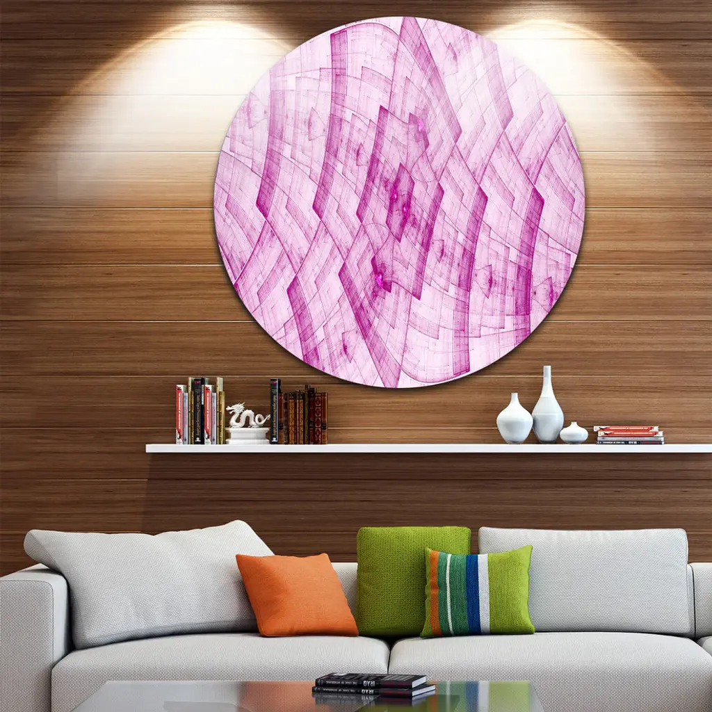 Dark Pink Psychedelic Fractal Metal Grid, Abstract Round Wall Art, 36"
