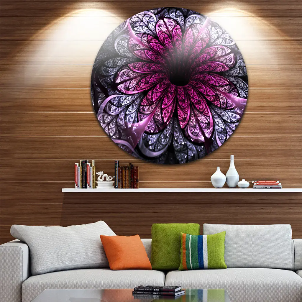 Bring Contemporary Abstraction to your home with this large Circle Metal wall art. This Dark Purple Fractal Flower Digital Art Metal Artwork makes it the focal point of any room or office. - White Gloss Coating ensures colors are extra vibrant with light reflection.- Aluminum grade Sheet Metal with 1 inch mounting frame on the back giving the illusion that the artwork is floating on the wall..- Mounting Brackets are included along with instructions.- High Quality Digital images are created directly into a glossy aluminum panel producing a stunning and captivating print into the glossy finish of the metal.- Water, Fire and Scratch resistant HD Aluminum panels.- Looks better than any photo paper and guaranteed to last at least 20 years- Easy to clean with a microfiber cloth. Colors are far superior to regular Canvas Art. - Easy to Hang