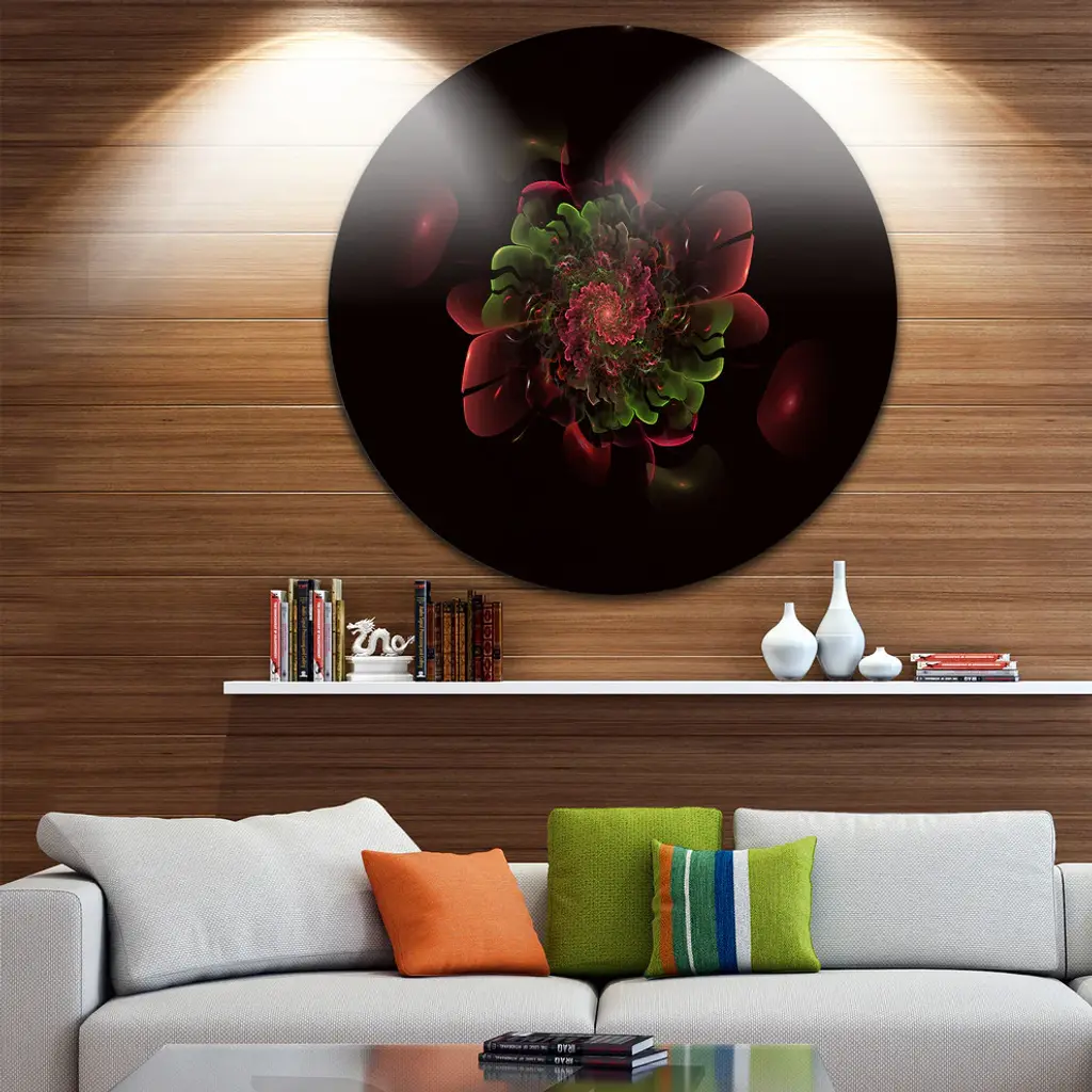 Bring Contemporary Abstraction to your home with this large Circle Metal wall art. This Dark Purple Rounded Fractal Flower Metal Artwork makes it the focal point of any room or office. - White Gloss Coating ensures colors are extra vibrant with light reflection.- Aluminum grade Sheet Metal with 1 inch mounting frame on the back giving the illusion that the artwork is floating on the wall..- Mounting Brackets are included along with instructions.- High Quality Digital images are created directly into a glossy aluminum panel producing a stunning and captivating print into the glossy finish of the metal.- Water, Fire and Scratch resistant HD Aluminum panels.- Looks better than any photo paper and guaranteed to last at least 20 years- Easy to clean with a microfiber cloth. Colors are far superior to regular Canvas Art. - Easy to Hang