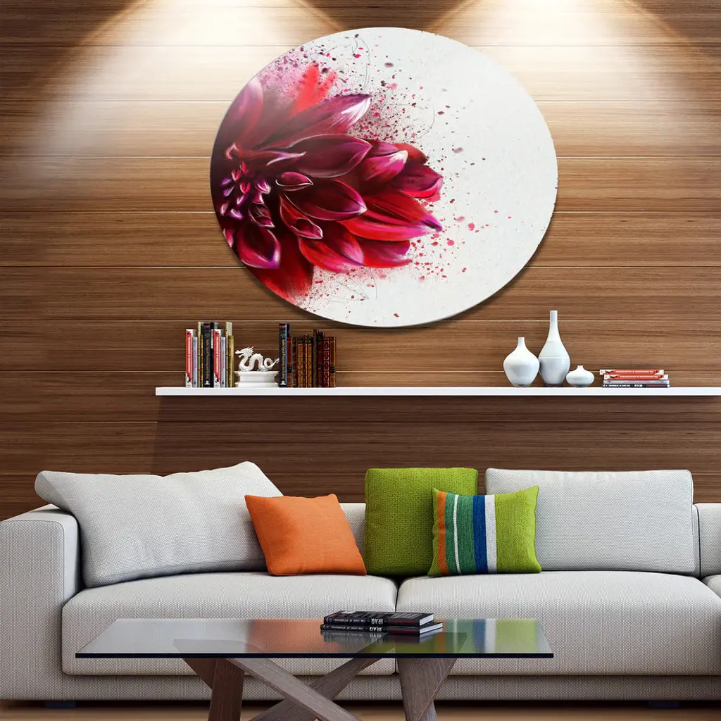 Bring Contemporary Abstraction to your home with this large Circle Metal wall art. This Dark Red Watercolor Rose Flower Metal Artwork makes it the focal point of any room or office. - White Gloss Coating ensures colors are extra vibrant with light reflection.- Aluminum grade Sheet Metal with 1 inch mounting frame on the back giving the illusion that the artwork is floating on the wall..- Mounting Brackets are included along with instructions.- High Quality Digital images are created directly into a glossy aluminum panel producing a stunning and captivating print into the glossy finish of the metal.- Water, Fire and Scratch resistant HD Aluminum panels.- Looks better than any photo paper and guaranteed to last at least 20 years- Easy to clean with a microfiber cloth. Colors are far superior to regular Canvas Art. - Easy to Hang