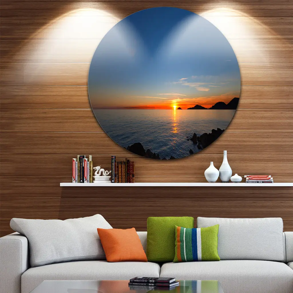 Dark Sunset In Gulf Of La Spezia, Seascape Photo Disc Metal Art, 38"