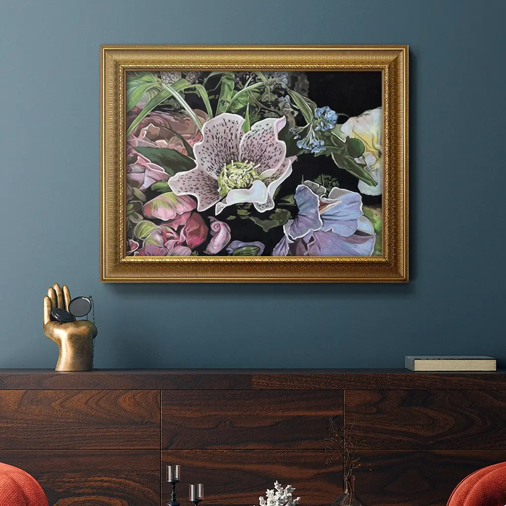 Dark Velvet I Premium Framed Canvas- Ready to Hang A Premium Framed Canvas created to last. Framed in distressed wood and available in an array of sizes and colors Featuring a beveled a solid wood stretcher bar, each piece comes ready to hand 3 SIZES AVAILABLE 16''X20'' - Overall Size 18'X27'' - Overall Size 24''x36'' - Overall Size Each piece is made to order. Each piece comes with hanging hardware. Made in the USA Ready to Hang Giclee Paper Print Acrylic Glass Beveled Matt Board