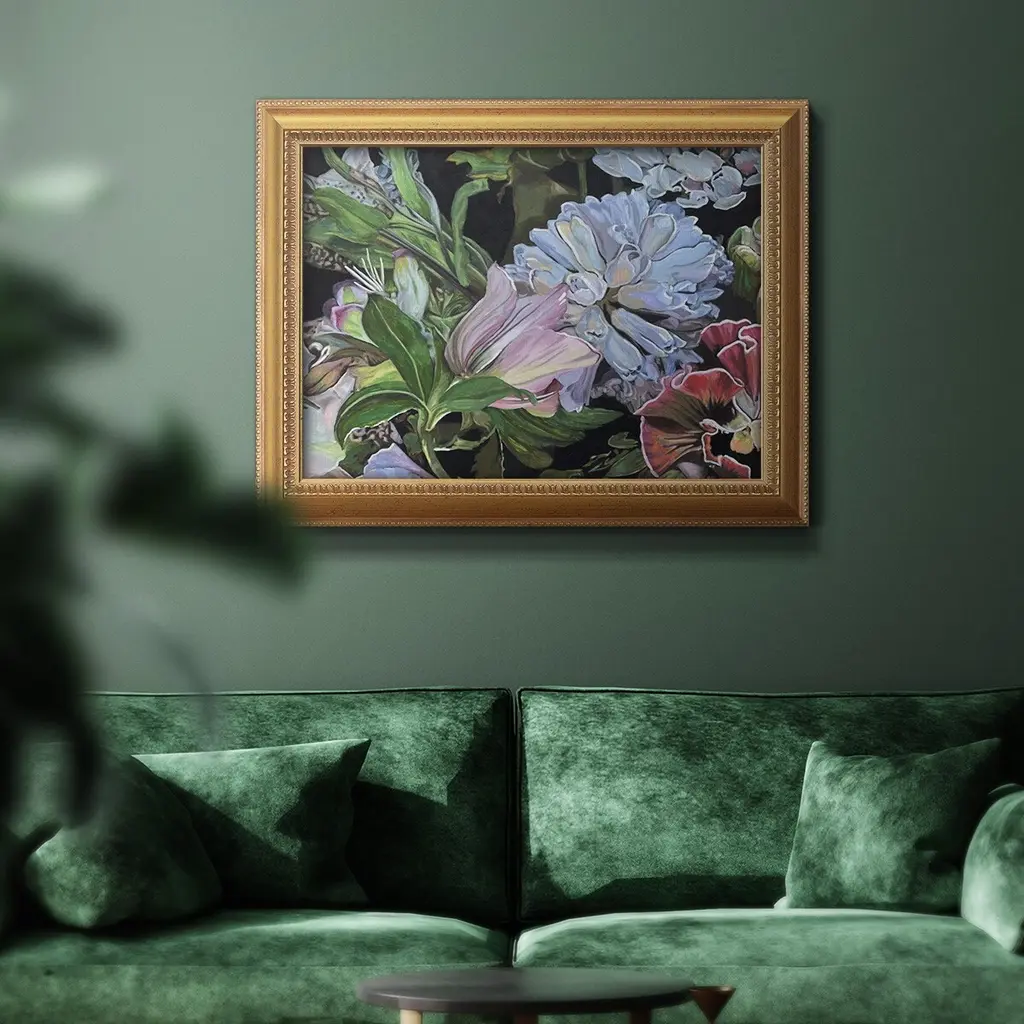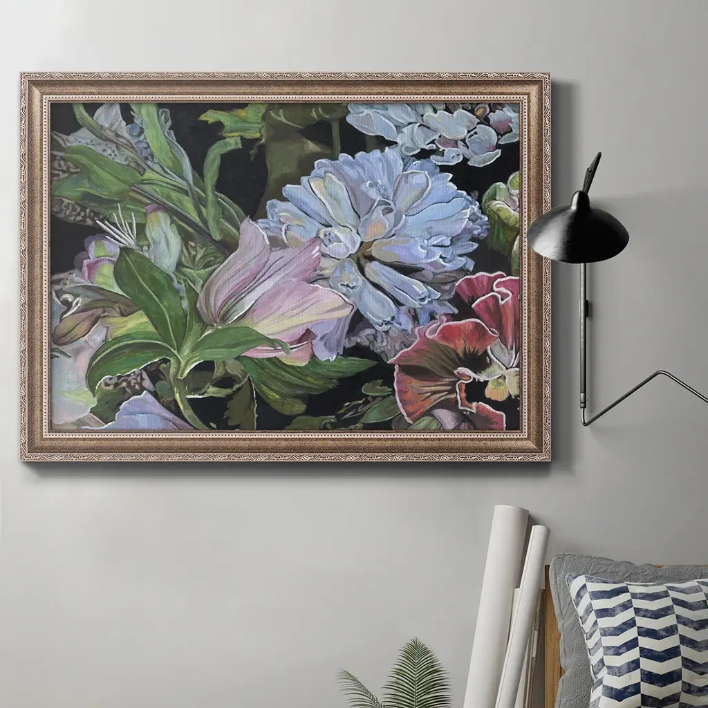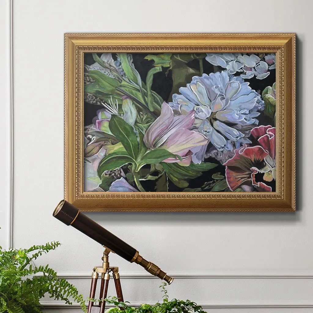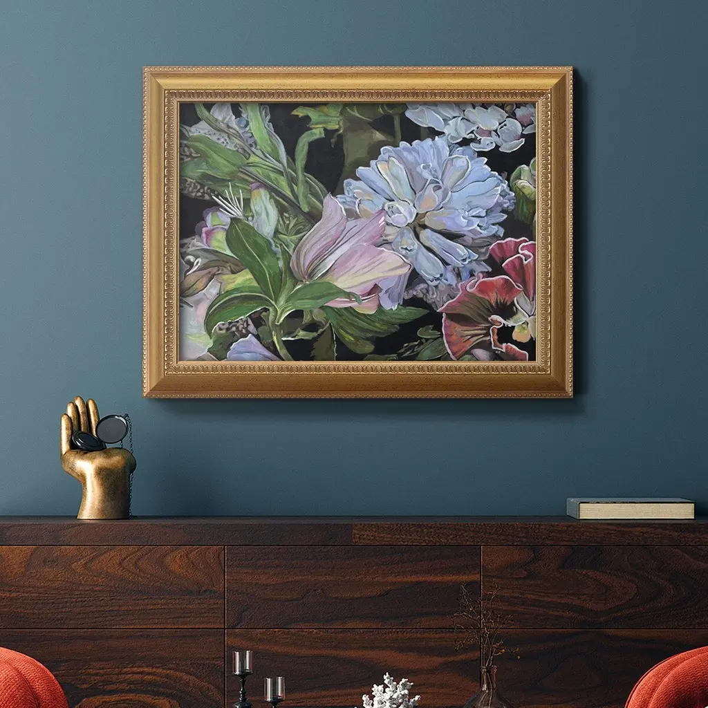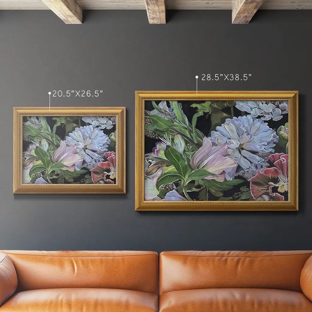 Dark Velvet II Premium Framed Canvas- Ready to Hang A Premium Framed Canvas created to last. Framed in distressed wood and available in an array of sizes and colors Featuring a beveled a solid wood stretcher bar, each piece comes ready to hand 3 SIZES AVAILABLE 16''X20'' - Overall Size 18'X27'' - Overall Size 24''x36'' - Overall Size Each piece is made to order. Each piece comes with hanging hardware. Made in the USA Ready to Hang Giclee Paper Print Acrylic Glass Beveled Matt Board