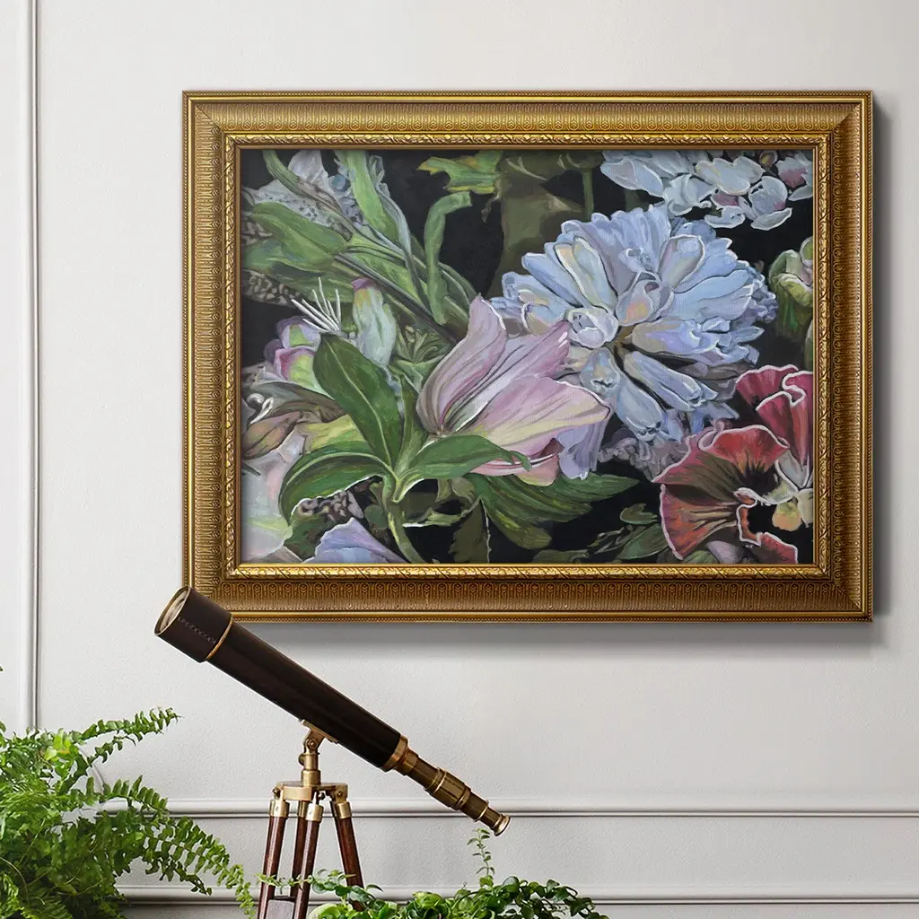 Dark Velvet II Premium Framed Canvas- Ready to Hang A Premium Framed Canvas created to last. Framed in distressed wood and available in an array of sizes and colors Featuring a beveled a solid wood stretcher bar, each piece comes ready to hand 3 SIZES AVAILABLE 16''X20'' - Overall Size 18'X27'' - Overall Size 24''x36'' - Overall Size Each piece is made to order. Each piece comes with hanging hardware. Made in the USA Ready to Hang Giclee Paper Print Acrylic Glass Beveled Matt Board