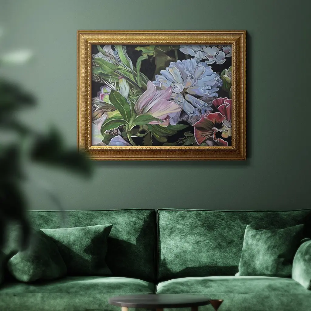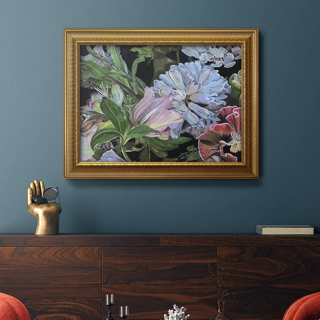 Dark Velvet II Premium Framed Canvas- Ready to Hang A Premium Framed Canvas created to last. Framed in distressed wood and available in an array of sizes and colors Featuring a beveled a solid wood stretcher bar, each piece comes ready to hand 3 SIZES AVAILABLE 16''X20'' - Overall Size 18'X27'' - Overall Size 24''x36'' - Overall Size Each piece is made to order. Each piece comes with hanging hardware. Made in the USA Ready to Hang Giclee Paper Print Acrylic Glass Beveled Matt Board