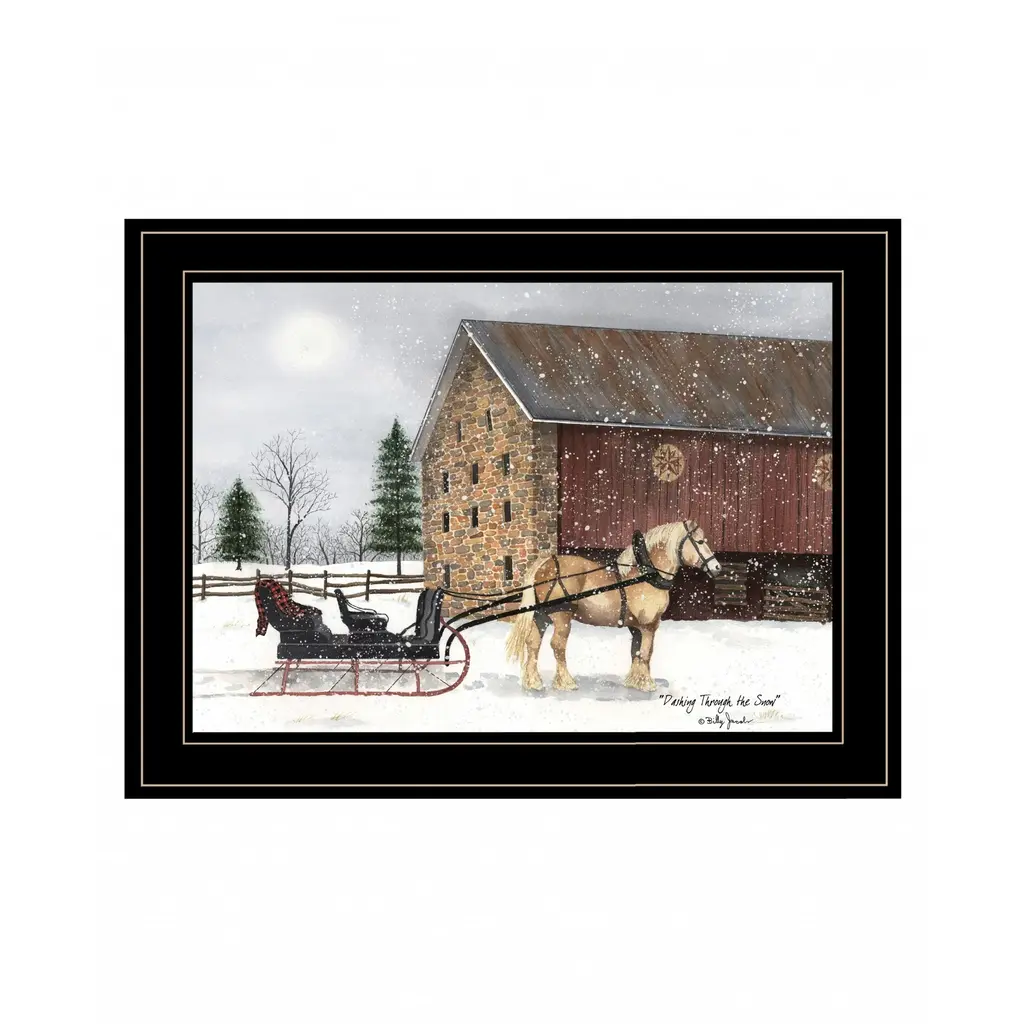 Unique and decorative, this dashing through the snow 2 black framed print wall art will leave a lasting impression. This print is a visual artistic expression that allows you to decorate your space in style. Reproduced for you on wood, this hanging decorative accent will be a trendy and fashionable way to dress your walls in a rustic and modern farmhouse vibe. Adding this hanging wall art to your space to make your room feel more finished and attractive. Utilize this opportunity to create a focal point in the room with this fabulous wall decor option. 15" H x 19" W x 1" D