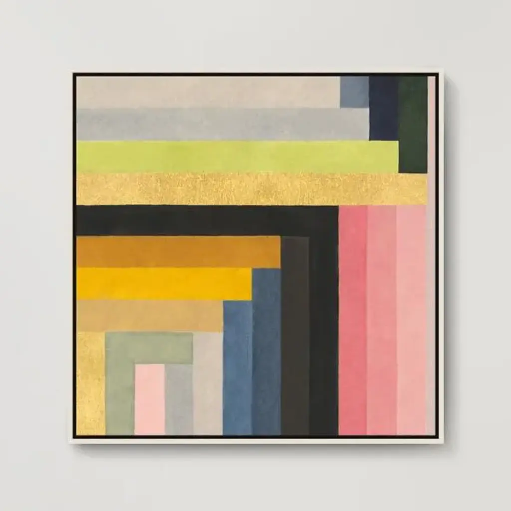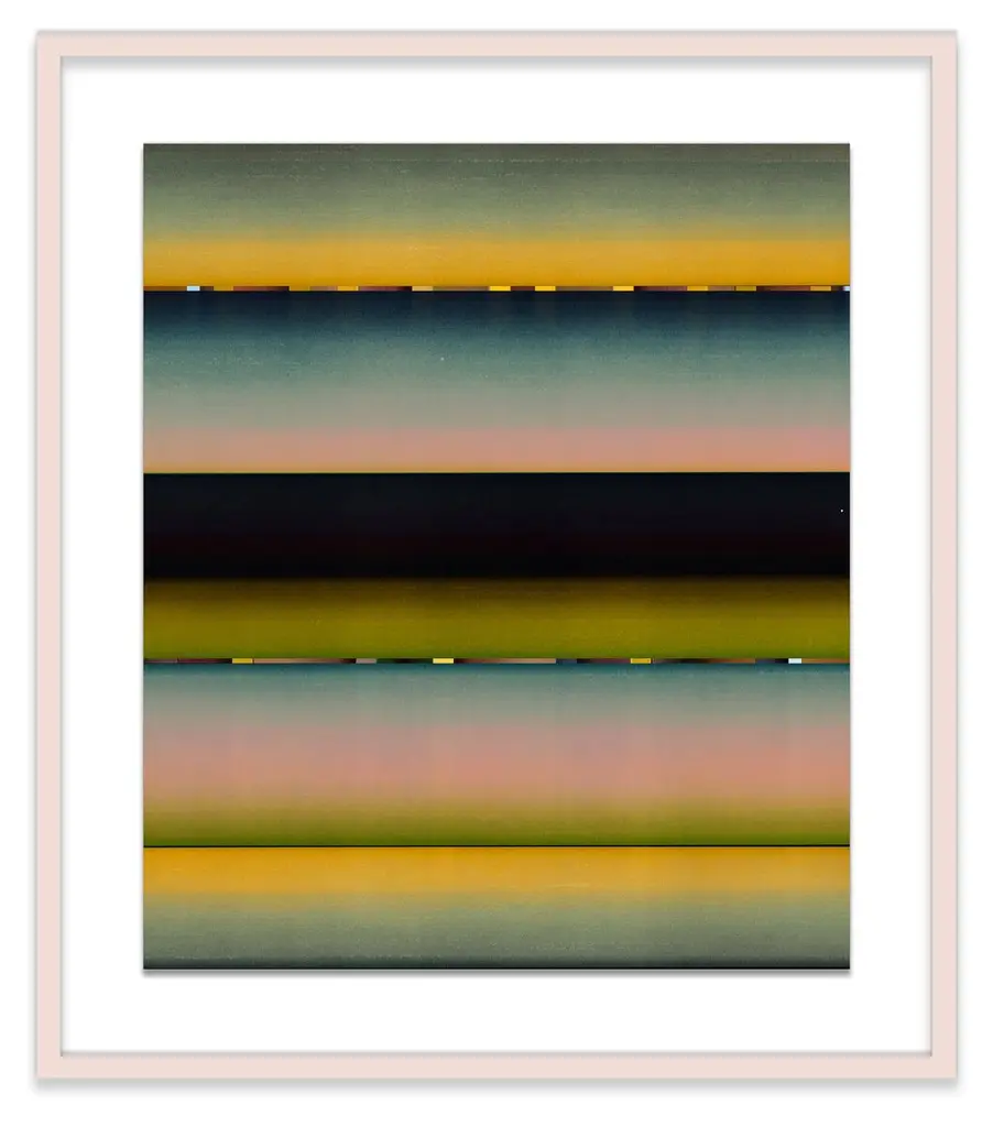 Seen first at One Kings Lane: This work from David Grey offers a captivating modern study of color and form. Printed on watercolor paper and floated over a white mat in a deep pine frame, this piece arrives ready to hang.The former Chair of the Graphic Design Department at Santa Fe University of Art and Design, David Grey's creative practice is a hybrid of studio art and graphic design. His primary interest is the exploration of mindfulness and contemplation as the ground for one’s creative process. He is the founder of SunMountain School of Contemplative Art, the publisher of Cottage Scholar (a contemplative design broadsheet), and a teacher of mindfulness and meditation.