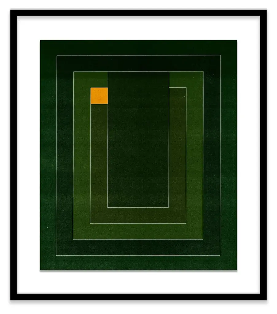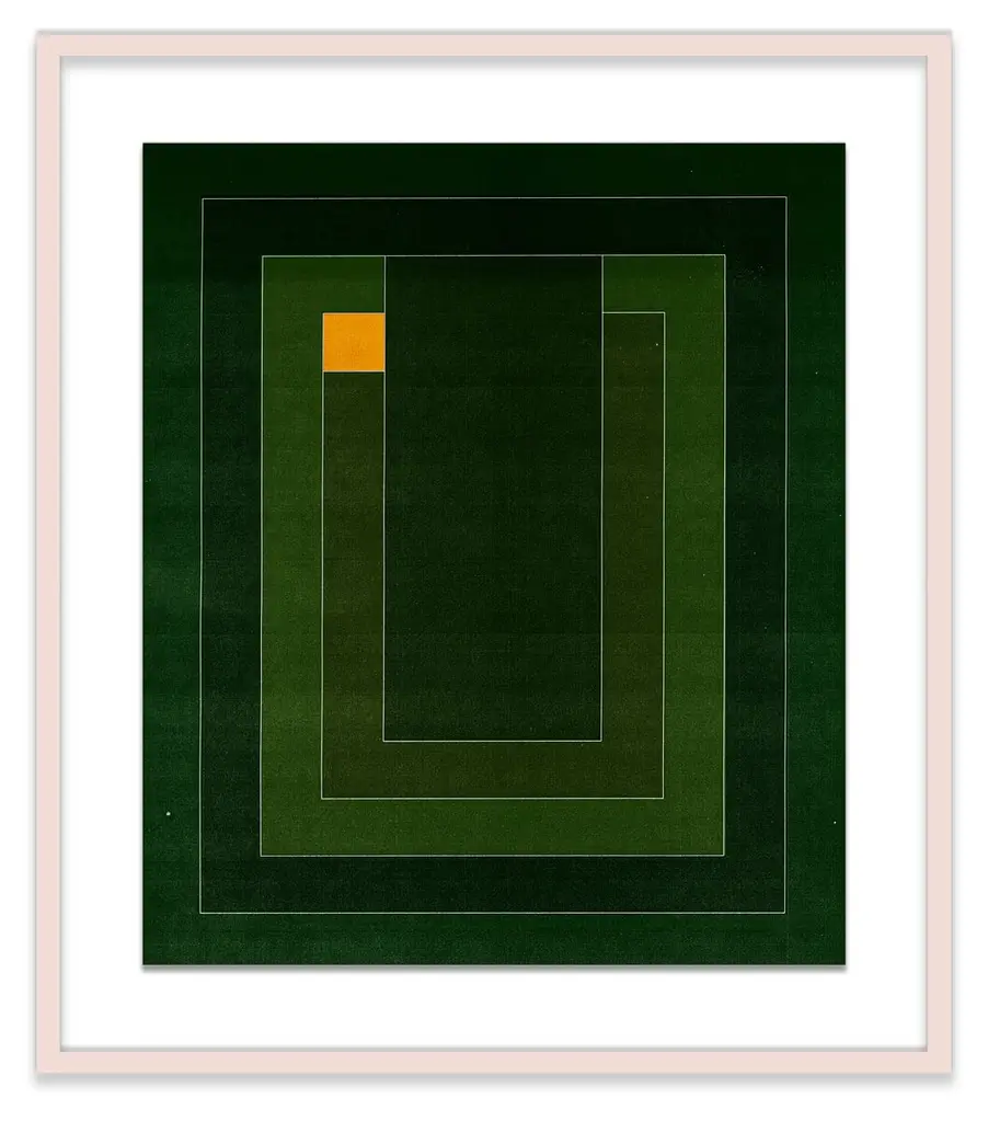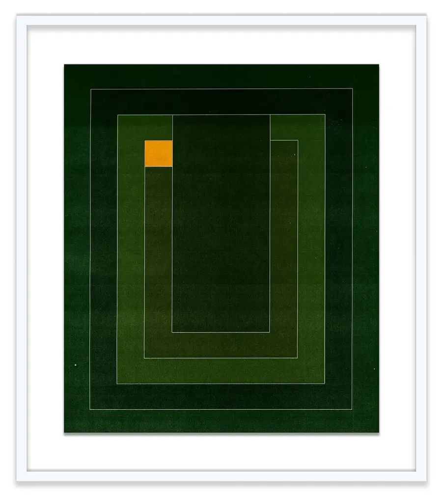 Seen first at One Kings Lane: This work from David Grey offers a captivating modern study of color and form. Printed on watercolor paper and floated over a white mat in a deep pine frame, this piece arrives ready to hang.The former Chair of the Graphic Design Department at Santa Fe University of Art and Design, David Grey's creative practice is a hybrid of studio art and graphic design. His primary interest is the exploration of mindfulness and contemplation as the ground for one’s creative process. He is the founder of SunMountain School of Contemplative Art, the publisher of Cottage Scholar (a contemplative design broadsheet), and a teacher of mindfulness and meditation.