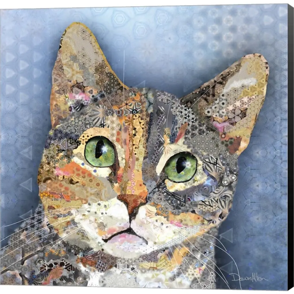 Calico Luna by Dawn Allen is a high quality piece of canvas artwork. The finished size of this piece is 12" X 12", and it has a depth 1.5" with black painted sides. There is a UV protective coating over the entire image, and it is ready to hang on your wall with no hardware required. 100% Satisfaction Guaranteed.