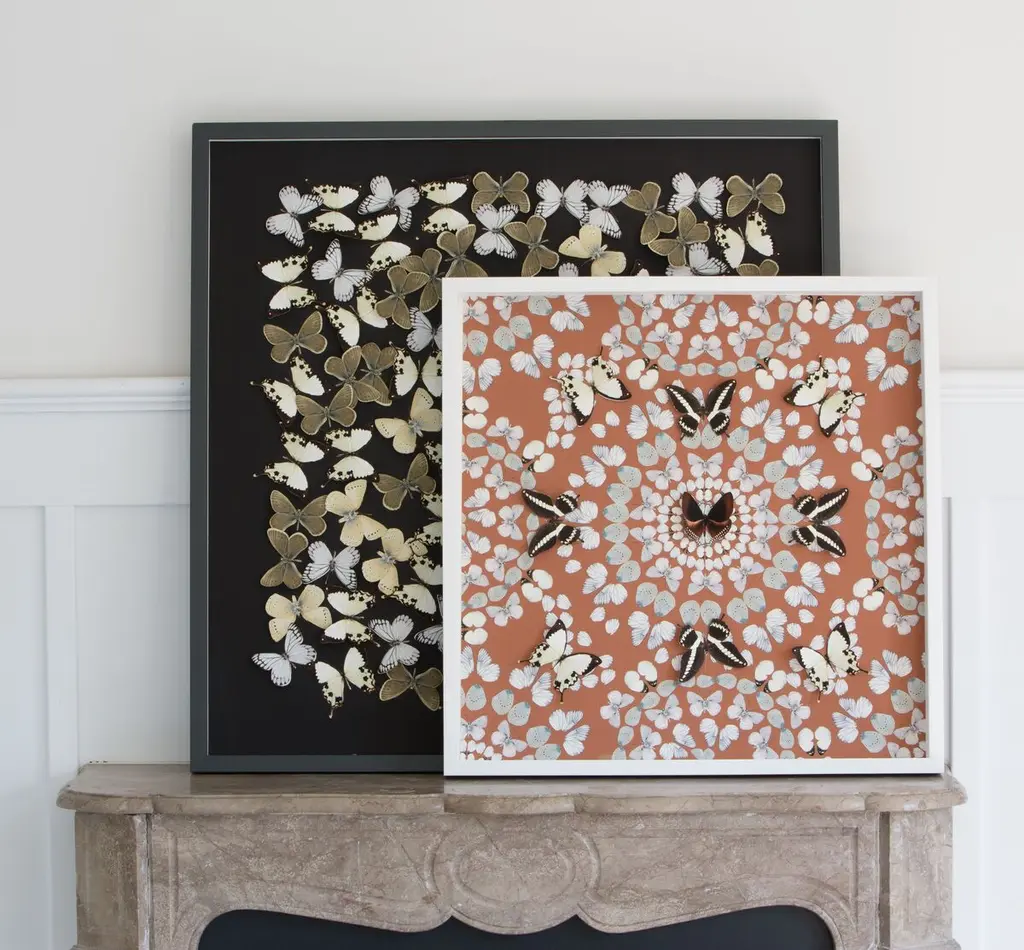 Seen first at One Kings Lane: This limited-edition work from Dawn Wolfe features an expressive butterfly collage embellished with impressively cut, three-dimensional paper butterflies that add contrast and depth. Signed, dated, and numbered by the artist, this piece is displayed under glass in a custom shadowbox frame and arrives ready to hang.