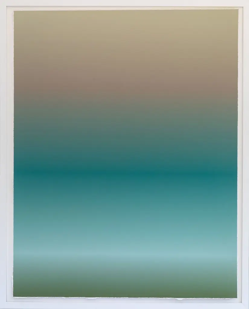 Seen first at One Kings Lane: This limited-edition work from Dawn Wolfe reproduces an abstract ombré print on archival cotton rag paper with hand-torn edges. Signed, dated, and numbered by the artist, this piece is floated under glass in a custom shadowbox frame and arrives ready to hang.