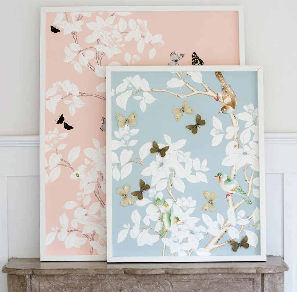 Seen first at One Kings Lane: This limited-edition work from Dawn Wolfe features a chinoiserie-inspired pattern embellished with impressively cut, three-dimensional paper butterflies that add contrast and depth. Signed, dated, and numbered by the artist, this piece is displayed under glass in a custom shadowbox frame and arrives ready to hang.