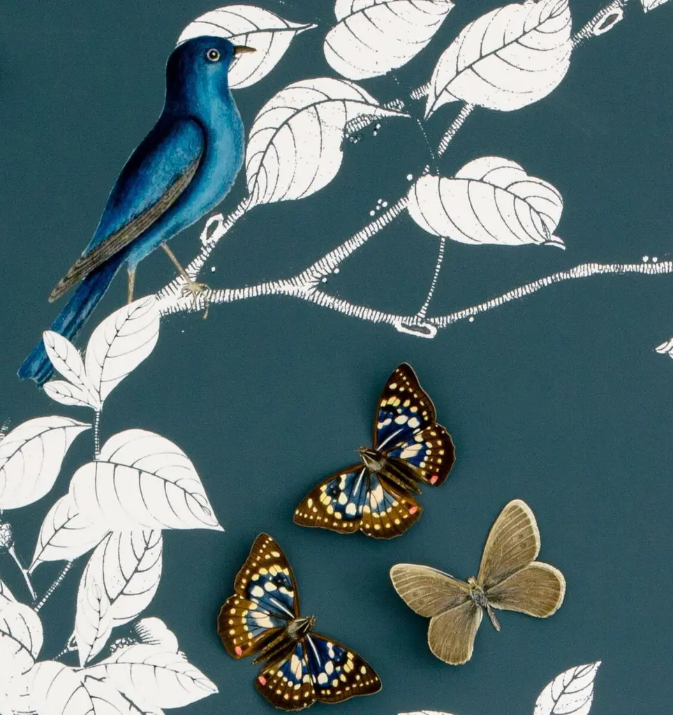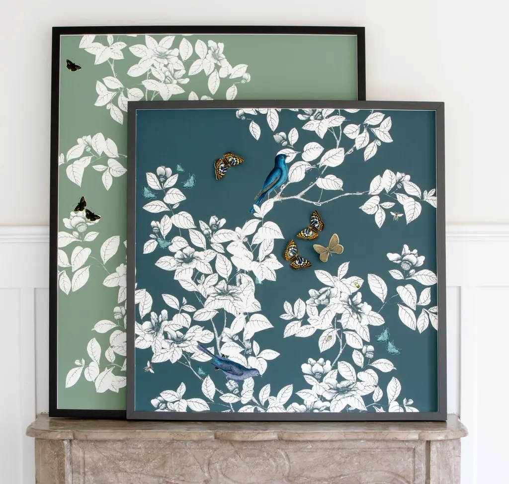 Seen first at One Kings Lane: This limited-edition work from Dawn Wolfe features a chinoiserie-inspired pattern embellished with impressively cut, three-dimensional paper butterflies that add contrast and depth. Signed, dated, and numbered by the artist, this piece is displayed under glass in a custom shadowbox frame and arrives ready to hang.