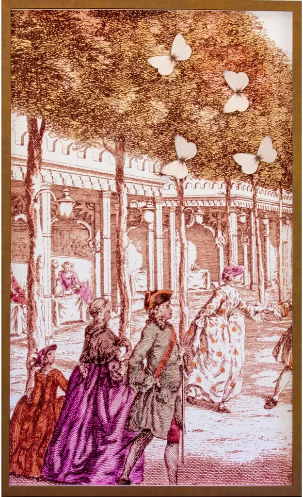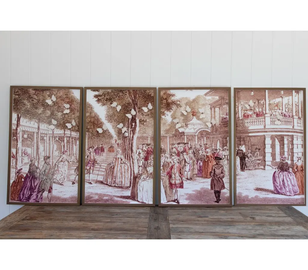Seen first at One Kings Lane: This limited-edition four-panel set from Dawn Wolfe features a historical fête scene embellished with impressively cut, three-dimensional paper butterflies that add contrast and depth. Each piece is displayed under glass in a custom shadowbox frame and arrives ready to hang.
