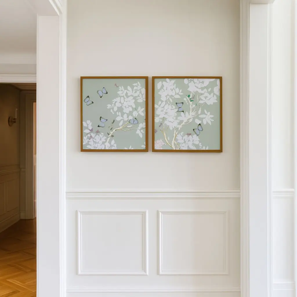 Dawn Wolfe, Pale Gray/green Chinoiserie Diptych