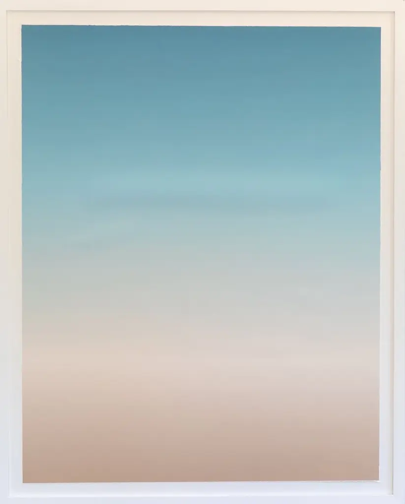 Seen first at One Kings Lane: This limited-edition work from Dawn Wolfe reproduces an abstract ombré print on archival cotton rag paper with hand-torn edges. Signed, dated, and numbered by the artist, this piece is floated under glass in a custom shadowbox frame and arrives ready to hang.