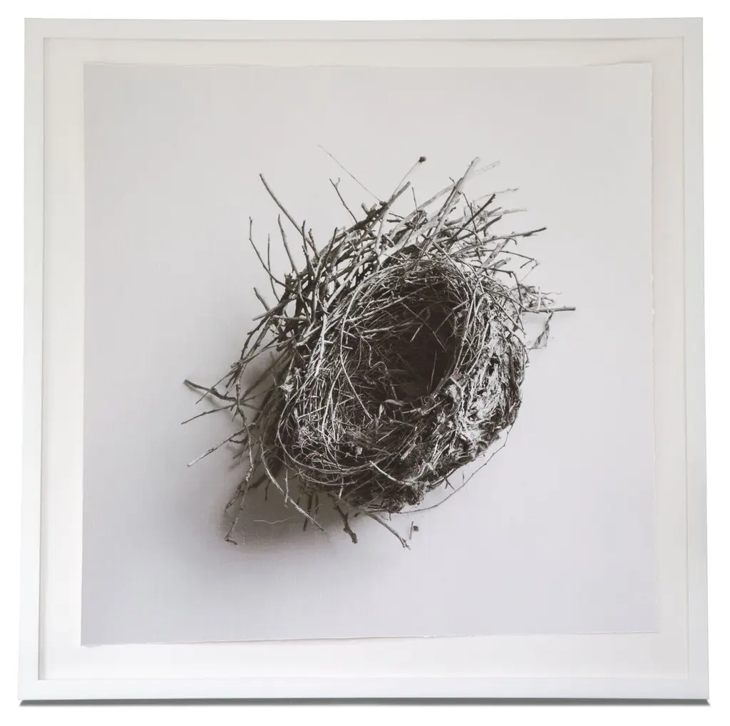 Seen first at One Kings Lane: Working in a collaborative environment with a collector and stylist, this breathtaking image of an abandoned weaver bird's nest is part of Dawn Wolf's first foray into photography. For this series, she acted as the director/producer, collaborating with a pro stylist to perfect each subject and enlisting Mark Hansen of Hansen Digital in San Francisco to shoot with one of his specialty scientific cameras. Signed, dated, and numbered, this piece is printed with an incredibly sharp 800 dpi resolution on heavy cotton rag paper with hand-torn edges and displayed in a custom shadowbox frame. Arrives ready to hang.