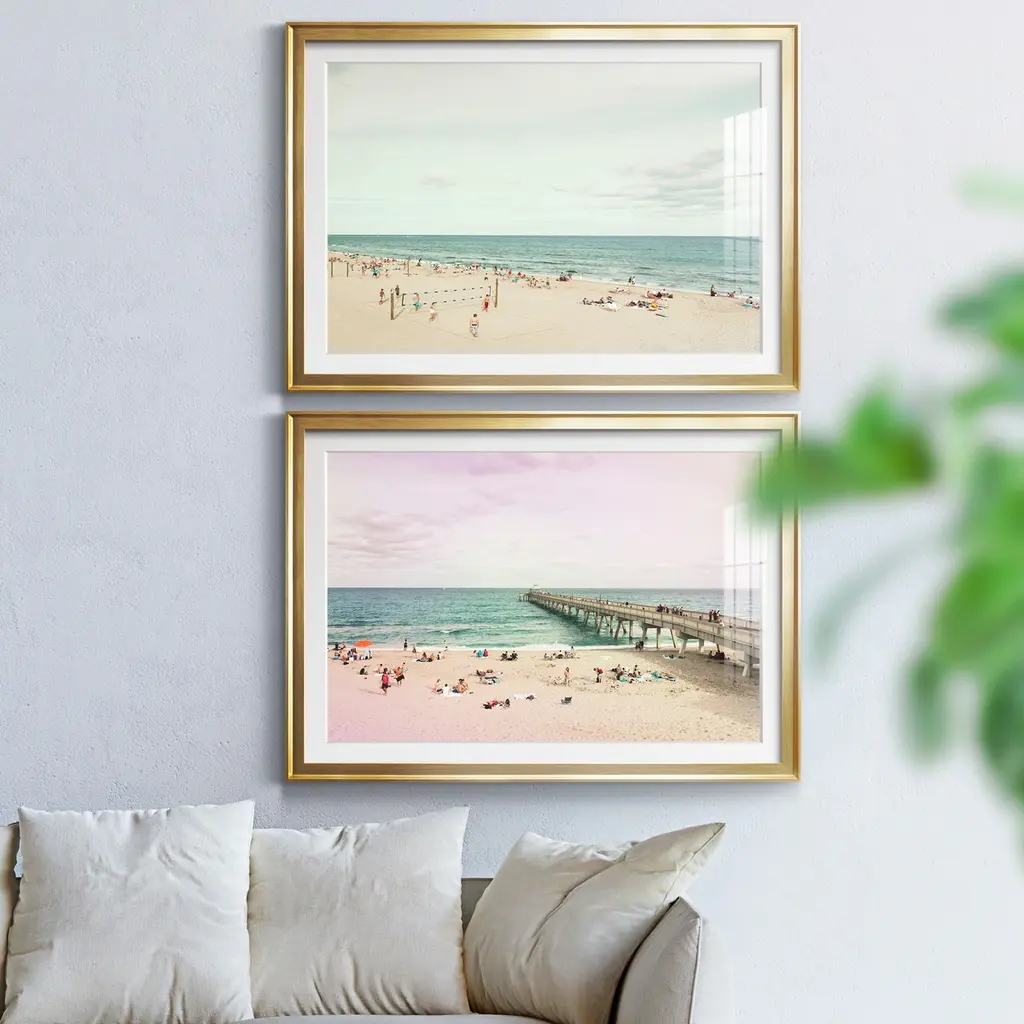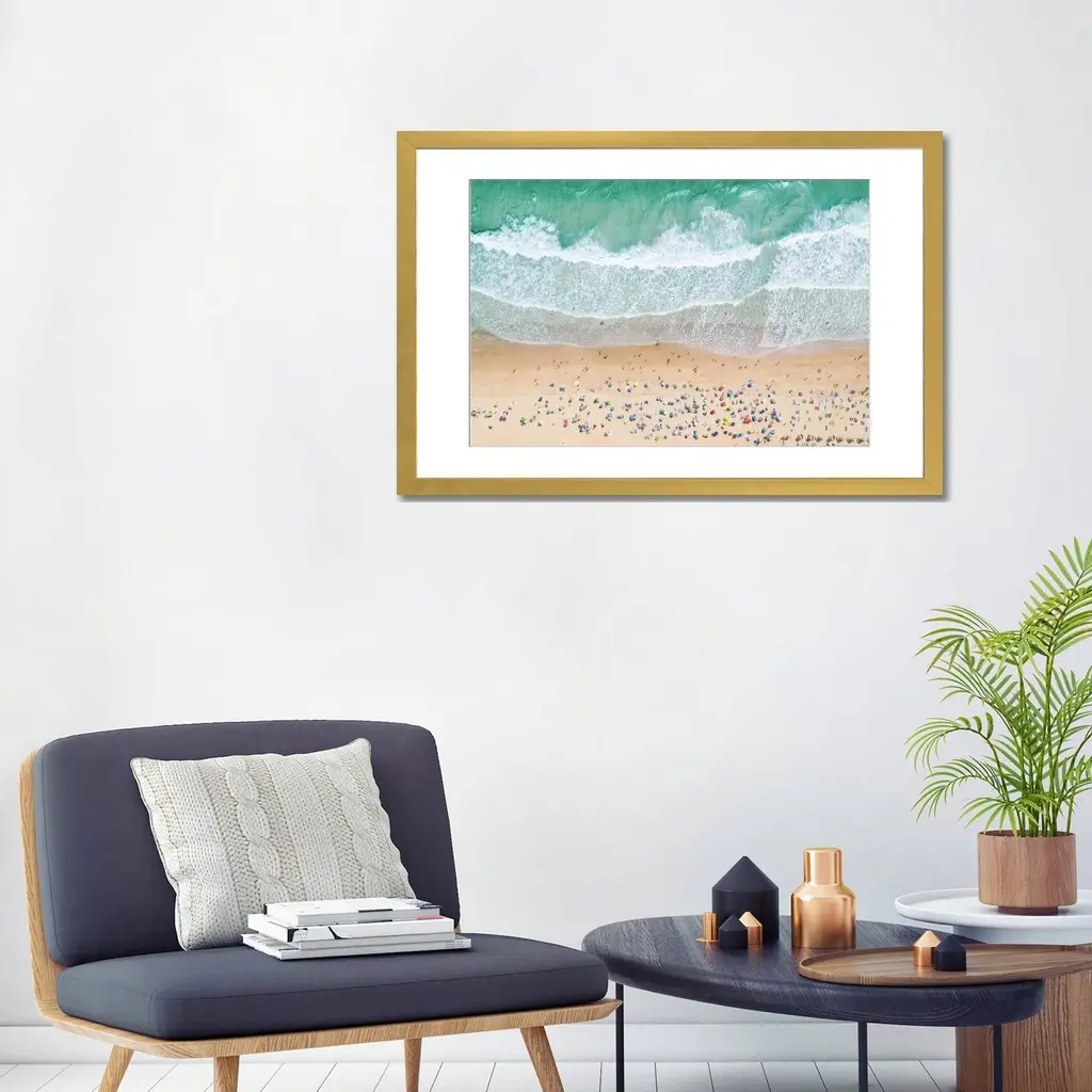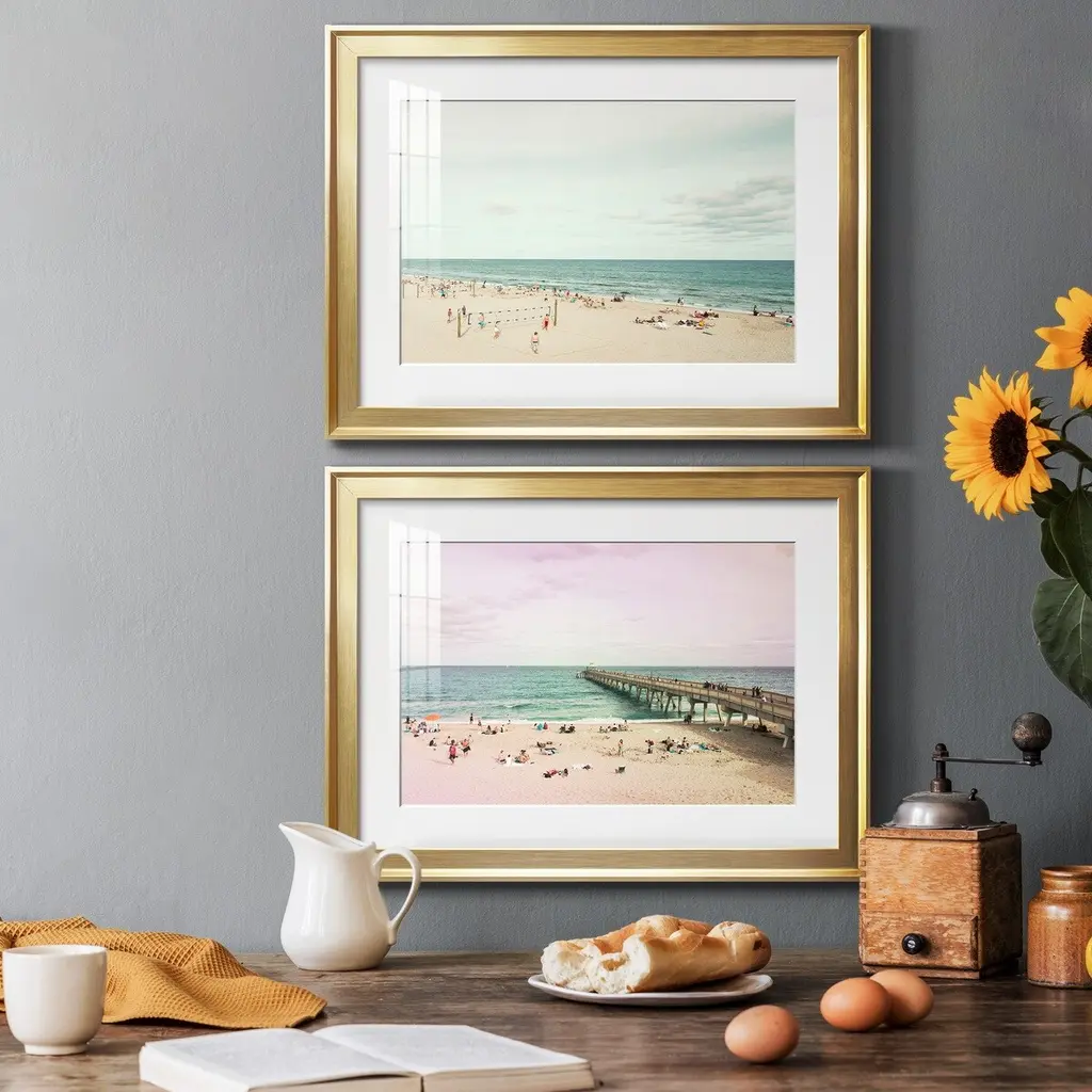 Day at the Beach Premium Framed Print - Ready to Hang A Premium Framed Print created to last. Framed in distressed wood and available in an array of sizes and colors Featuring a beveled a solid wood stretcher bar, each piece comes ready to hand 4 SIZES AVAILABLE 30.5''X42.5'' - Overall Size 26.5'X36.5'' - Overall Size 22''x30'' - Overall Size 18''x24'' - Overall Size Each piece is made to order. Each piece comes with hanging hardware. Made in the USA Ready to Hang Giclee Paper Print Acrylic Glass Beveled Matt Board