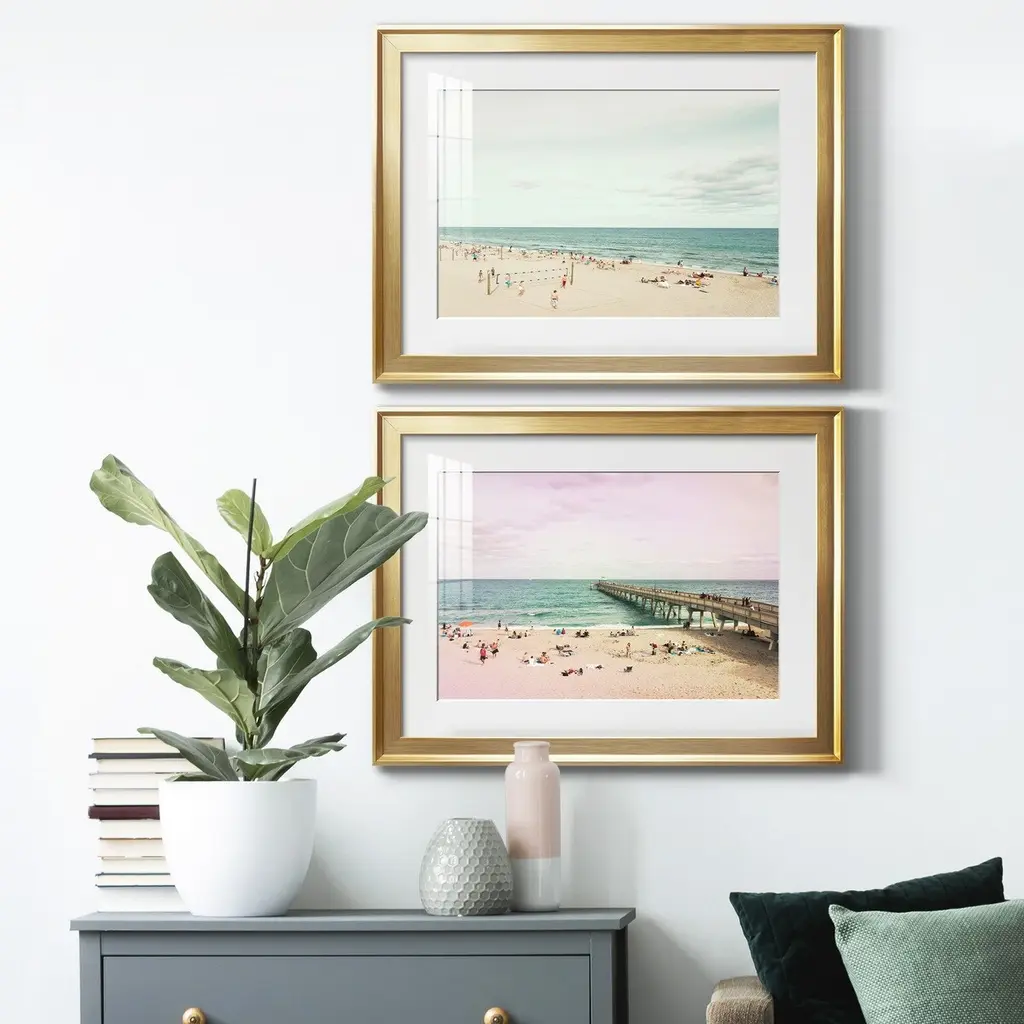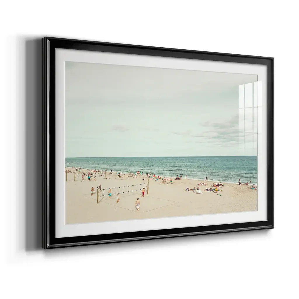 Day at the Beach Premium Framed Print - Ready to Hang A Premium Framed Print created to last. Framed in distressed wood and available in an array of sizes and colors Featuring a beveled a solid wood stretcher bar, each piece comes ready to hand 4 SIZES AVAILABLE 30.5''X42.5'' - Overall Size 26.5'X36.5'' - Overall Size 22''x30'' - Overall Size 18''x24'' - Overall Size Each piece is made to order. Each piece comes with hanging hardware. Made in the USA Ready to Hang Giclee Paper Print Acrylic Glass Beveled Matt Board