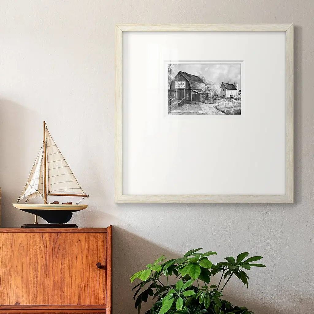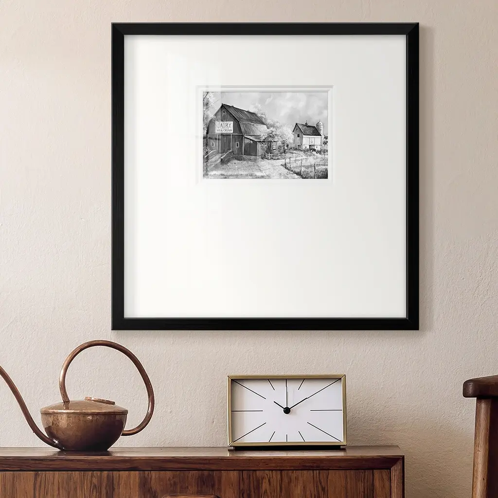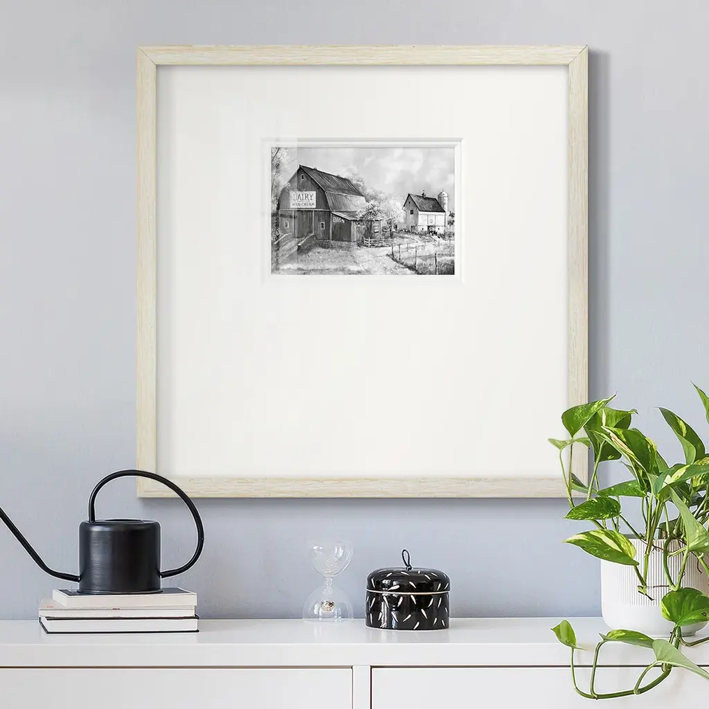 Day At The FarmPremium Framed Print A framed cold pressed paper print featuring superior double matting and quality frame. 2 SIZES AVAILABLE 16''X16''' - Overall Size 20''X20''' - Overall Size Each piece is made to order. Each piece comes with hanging hardware. Made in the USA Ready to Hang Giclee Paper Print Plexiglass Beveled Matt Board Double Matte Board