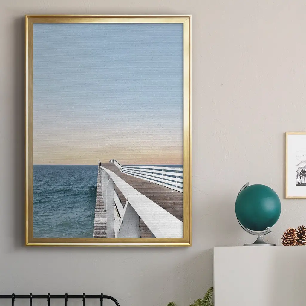 Day at the Pier Premium Framed Print - Ready to Hang A Premium Framed Print created to last. Framed in distressed wood and available in an array of sizes and colors Featuring a beveled a solid wood stretcher bar, each piece comes ready to hand 4 SIZES AVAILABLE 30.5''X42.5'' - Overall Size 26.5'X36.5'' - Overall Size 22.5''x30.5'' - Overall Size 18.5''x24.5'' - Overall Size Each piece is made to order. Each piece comes with hanging hardware. Made in the USA Ready to Hang