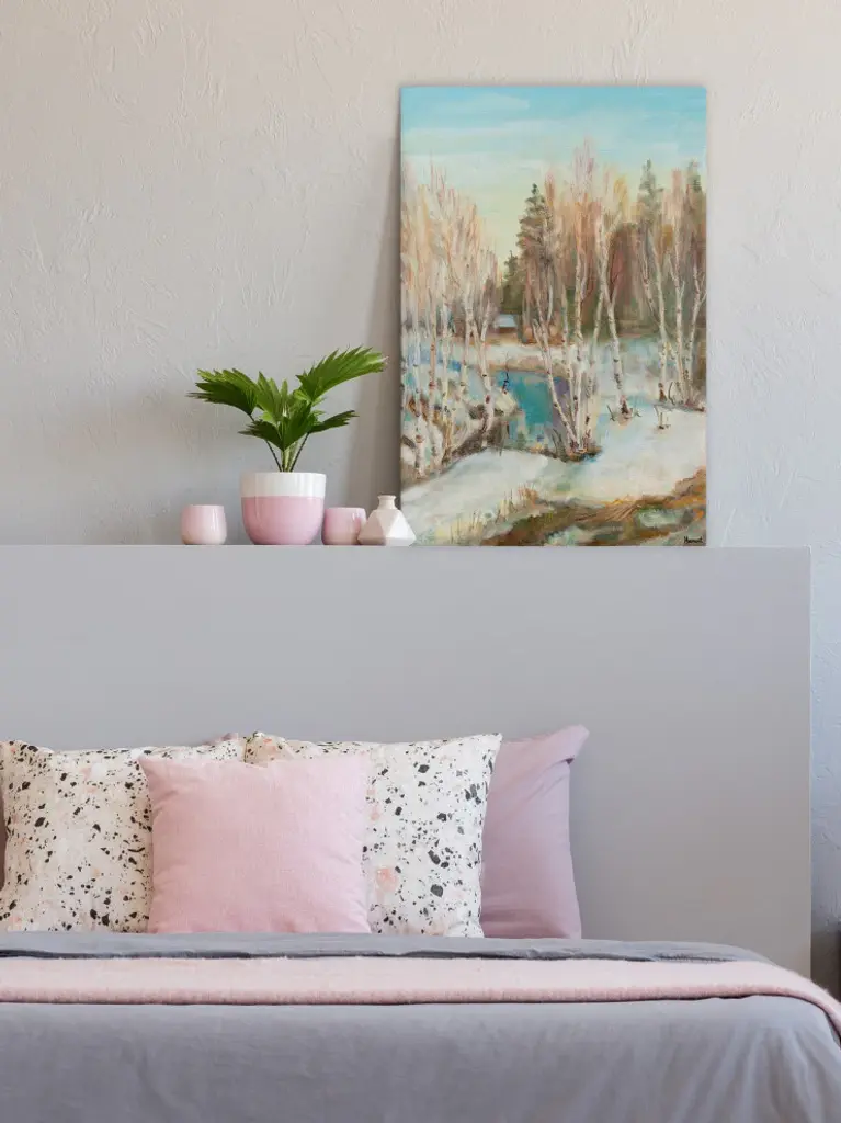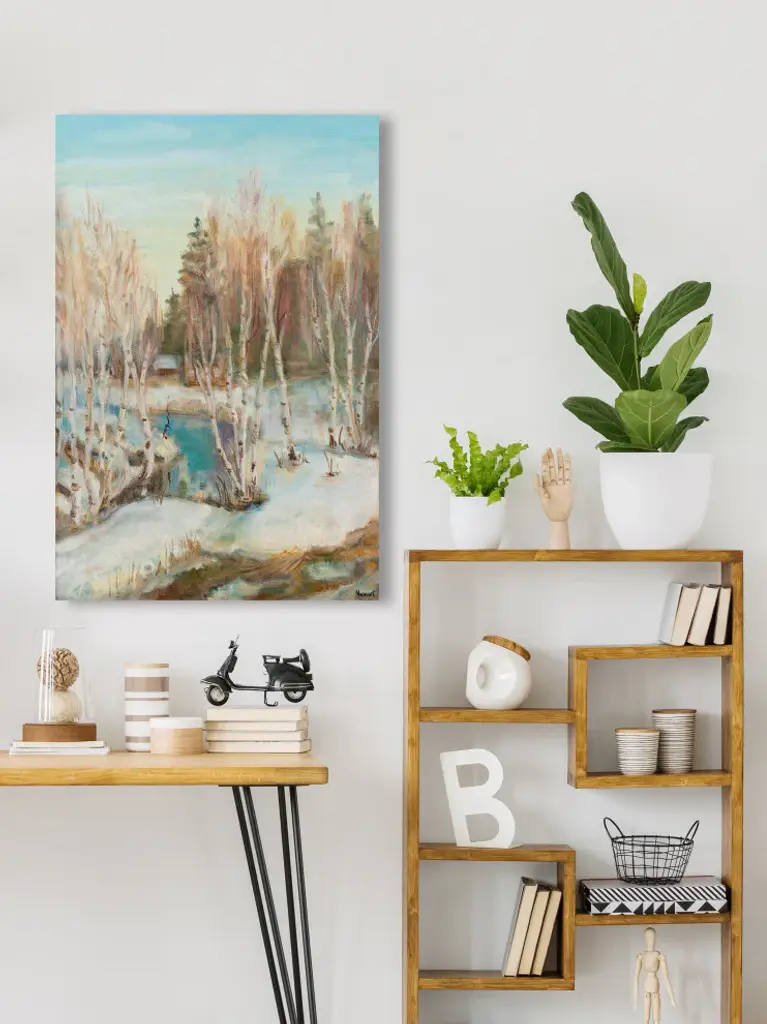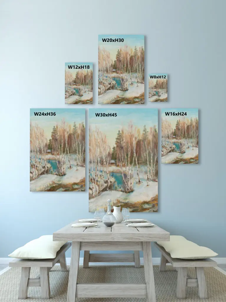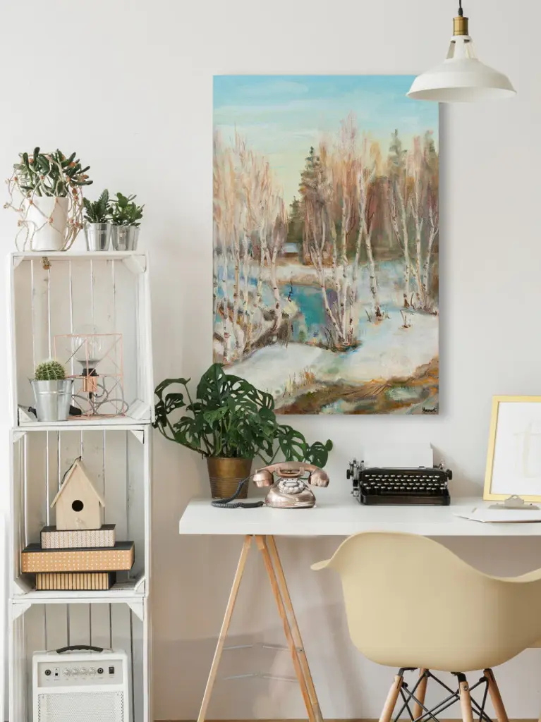 Celebrate the beauty of nature with this acrylic painting print that features a pond in the middle of the snowy forest. Proudly made in the USA, this piece is printed on canvas before it''s stretched over non-warping wooden bars for a gallery-wrapped look. With wall-mounting hooks included, this artful accent is ready to hang up as soon as it reaches your front door.- Fine art canvas print from the Marmont Hill Art Collective- Professionally hand stretched- Gallery wrapped in sustainable, non-warping wood- Arrives ready to hang- Made in the USA- Includes a certificate of authenticity