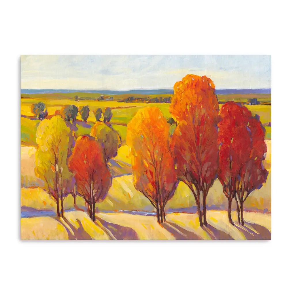 Bring the beauty of autumn indoors with this landscape fall canvas art print that captures the season’s serene charm. The rich hues and tranquil scenery evoke cozy walks through nature, making it a captivating focal point for seasonal décor. Perfect for lovers of fall landscapes and rustic wall art inspiration. Our Gallery Wrap Canvas Prints are proudly assembled with high quality materials in California, USA. Each piece is printed on a thick, archival grade canvas using Giclee technology. It is then hand-stretched by our experienced artisans over solid wood bars, which will not warp over time. The final product is a piece personally crafted for you to confidently display on your wall. Care and Assembly: Ensure that the location of your piece has little to no exposure to heat, sunlight, and moisture. Wipe clean, only if needed. Each piece includes a sawtooth hanger to hang on your wall horizontally.