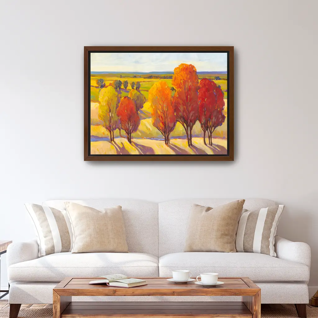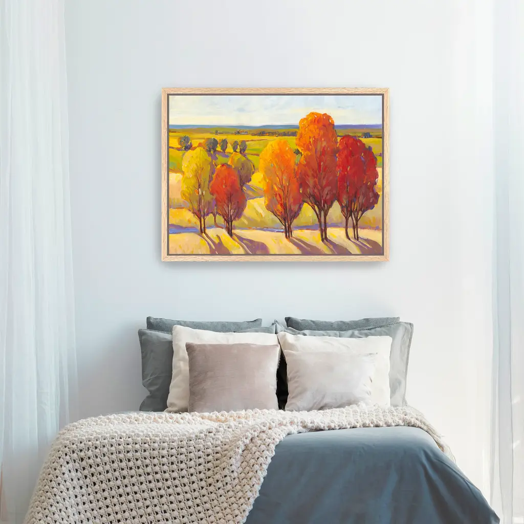 Bring the beauty of autumn indoors with this landscape fall canvas art print that captures the season’s serene charm. The rich hues and tranquil scenery evoke cozy walks through nature, making it a captivating focal point for seasonal décor. Perfect for lovers of fall landscapes and rustic wall art inspiration. Our Gallery Wrap Canvas Prints are proudly assembled with high quality materials in California, USA. Each piece is printed on a thick, archival grade canvas using Giclee technology. It is then hand-stretched by our experienced artisans over solid wood bars, which will not warp over time. The final product is a piece personally crafted for you to confidently display on your wall. Care and Assembly: Ensure that the location of your piece has little to no exposure to heat, sunlight, and moisture. Wipe clean, only if needed. Each piece includes a sawtooth hanger to hang on your wall horizontally.