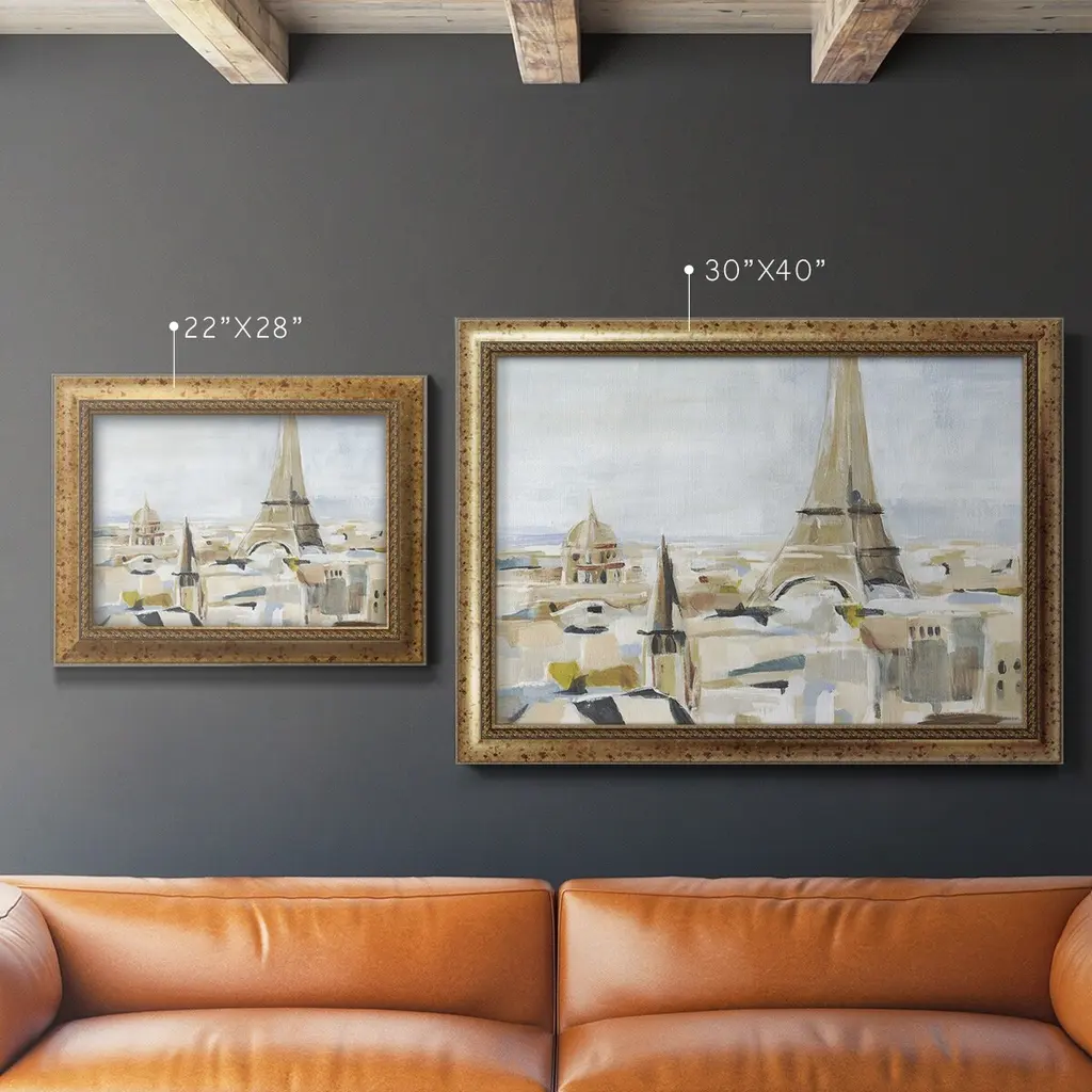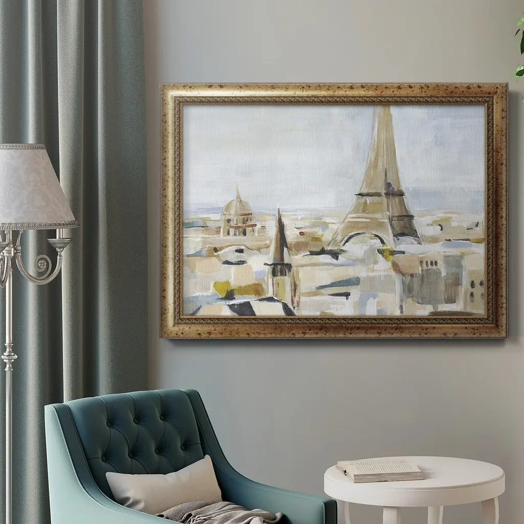 Daylight Paris II Premium Framed Canvas- Ready to Hang A Premium Framed Canvas created to last. Framed in distressed wood and available in an array of sizes and colors Featuring a beveled a solid wood stretcher bar, each piece comes ready to hand 3 SIZES AVAILABLE 16''X20'' - Overall Size 18'X27'' - Overall Size 24''x36'' - Overall Size Each piece is made to order. Each piece comes with hanging hardware. Made in the USA Ready to Hang Giclee Paper Print Acrylic Glass Beveled Matt Board