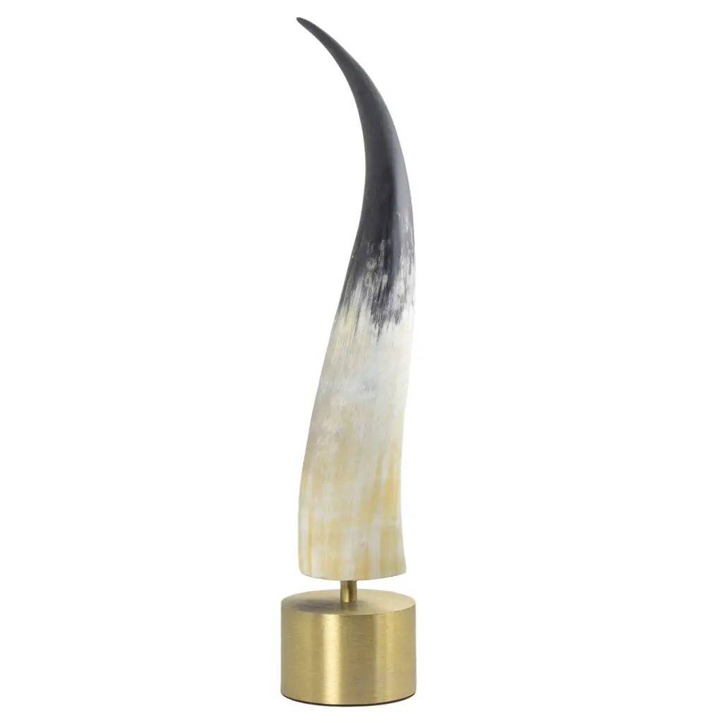 This luxurious sculpture is a bold pairing of two natural elements that make for a wildly chic accent piece. The natural horn has a matte finish and is distinctive when paired with its brass base, transforming it into a sculptural art piece.
