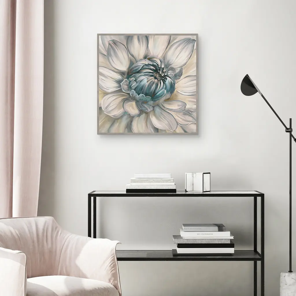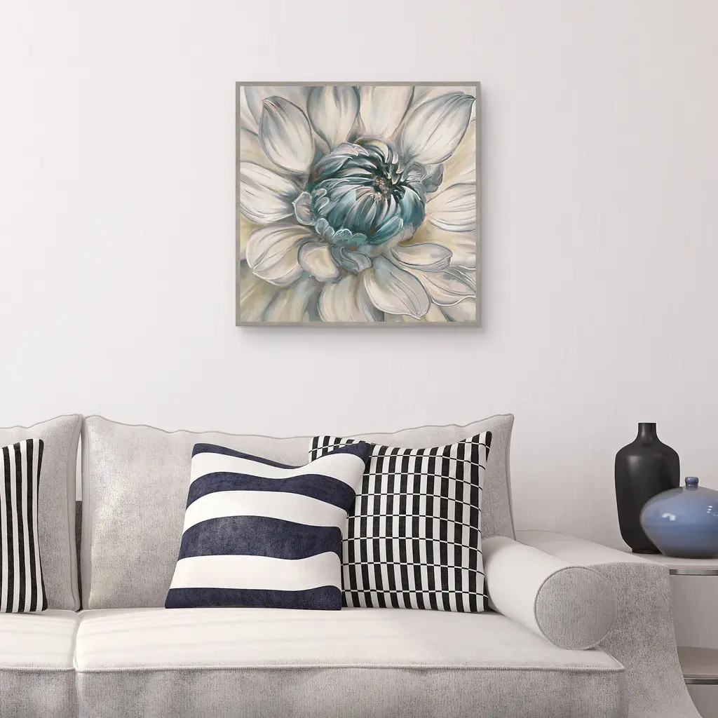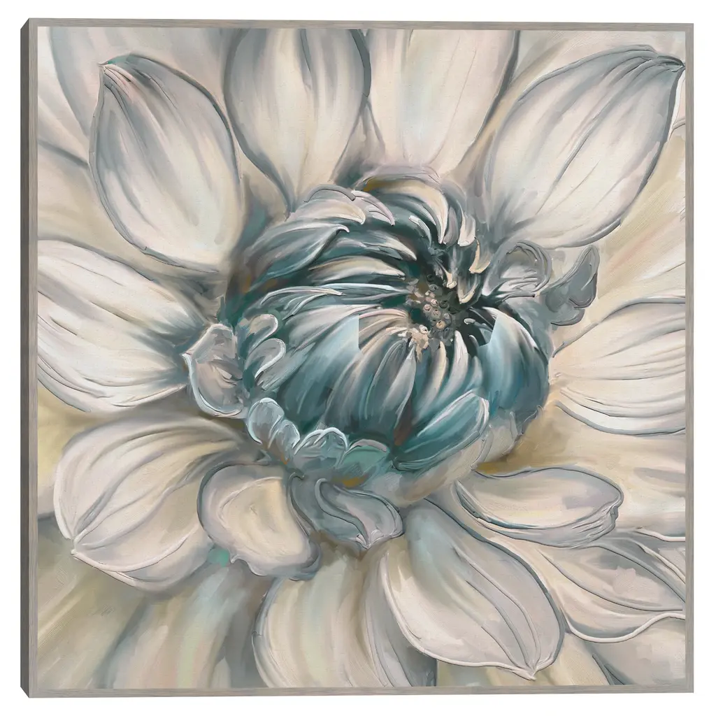Elegant milky-white petals curve inward, edges tinted steel blue, in this breathtakingly beautiful botanical. Made with superior materials using state-of-the-art printing technology, our giclee canvas prints are made with exceptional detail. Your new masterpiece comes ready to hang, equipped with a hand-crafted frame for a luxurious gallery look.