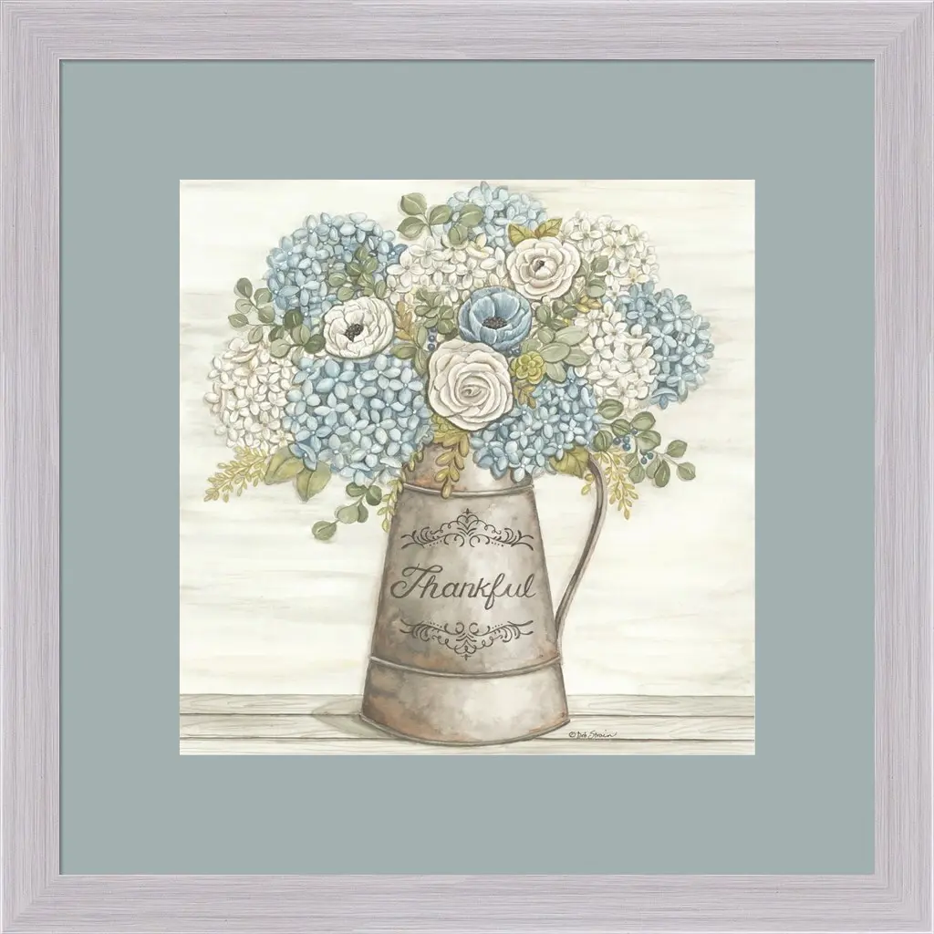 Thankful by Deb Strain is a high quality piece of framed artwork. The finished size of this piece is 25.5" X 25.5". It has a White Washed Light Marble Gray frame, is single matted and finished with high quality Acrylic Plexiglass. 100% Satisfaction Guaranteed.