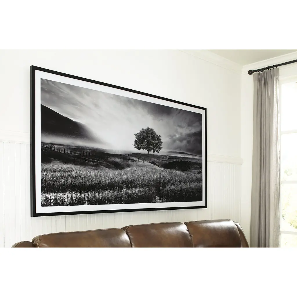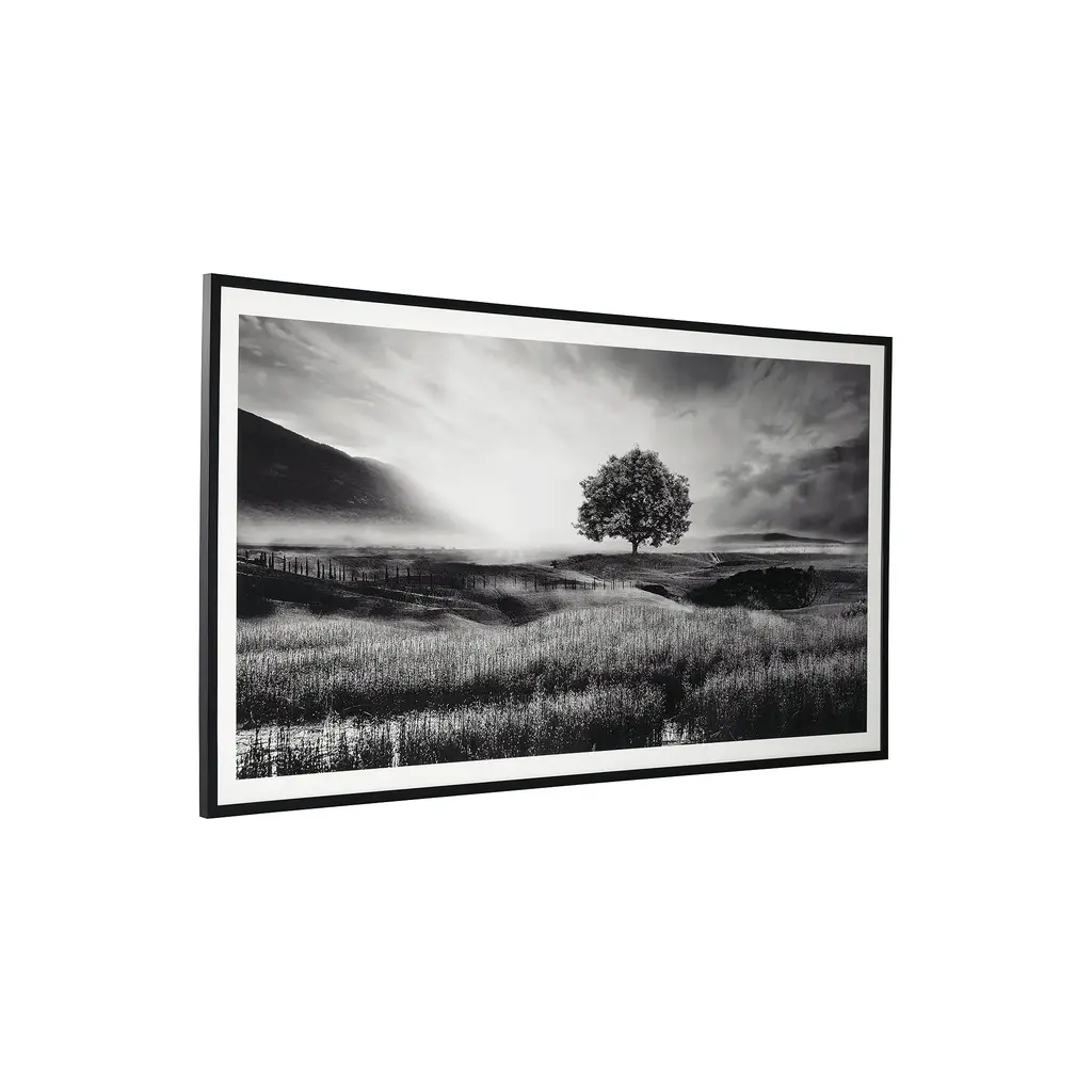 Filled with calming natural elements, this wall art has a refined look with a restful feel. It captures a landscape with rolling hills, drawing your eye to the tree standing tall in the center of the creation. Lighter tones in the clouds bring brightness to the black and white design, making for a striking addition to your modern decor.