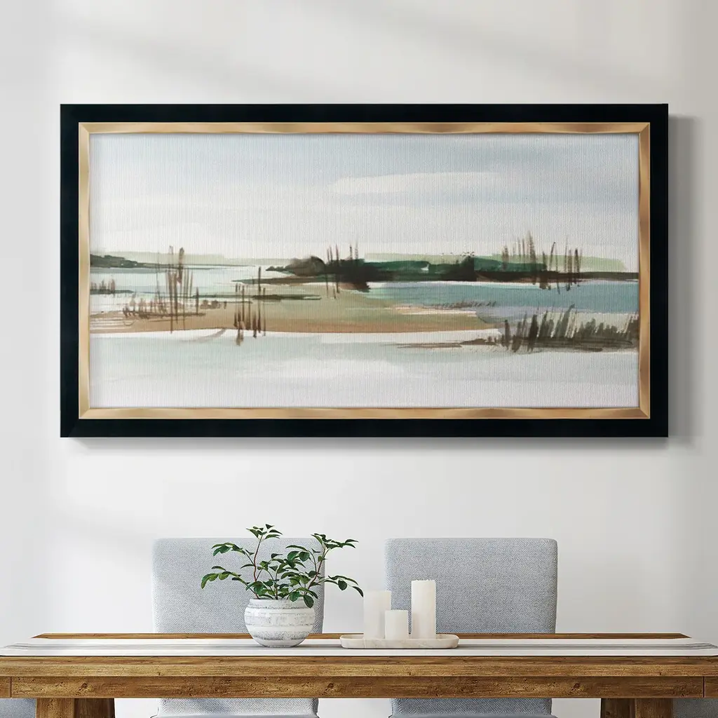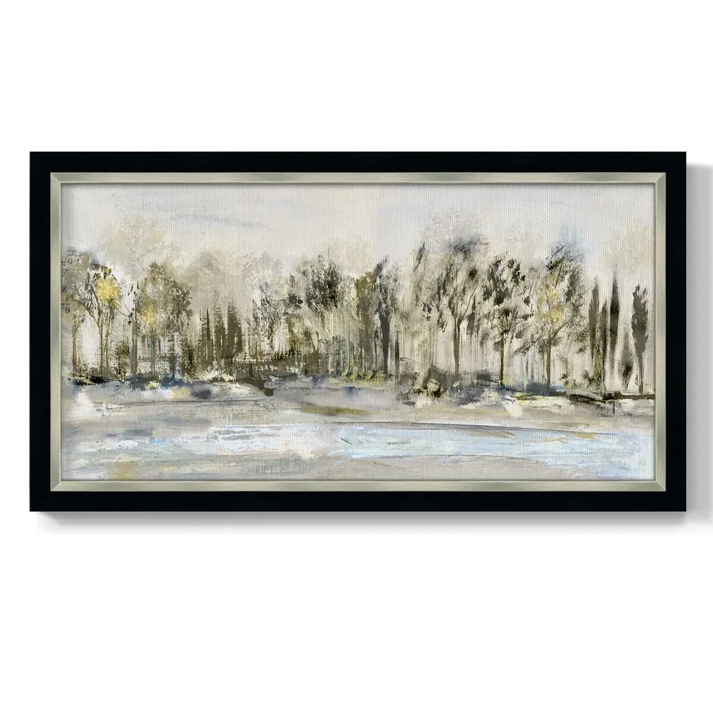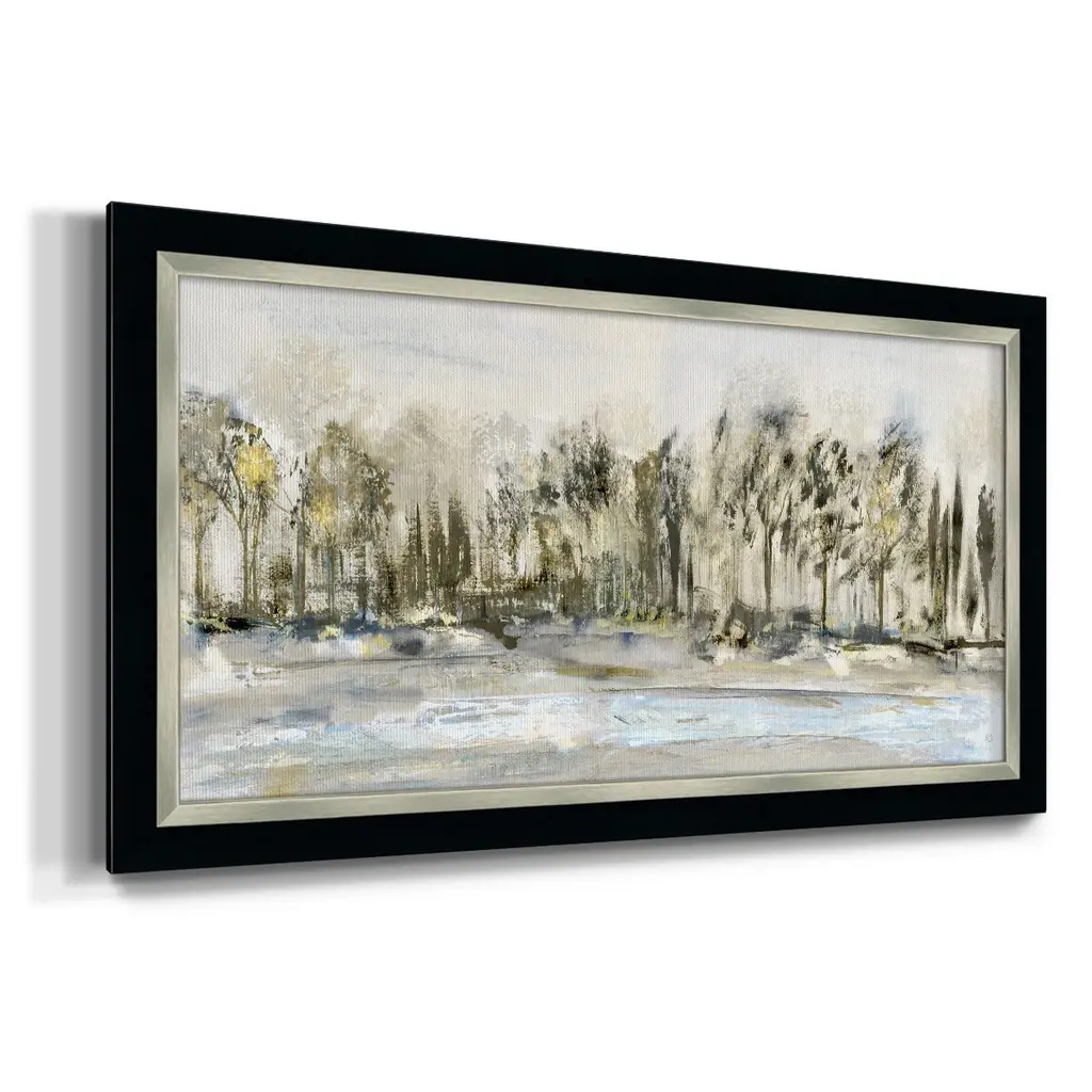 Debruce Tree Line Premium Framed Canvas- Ready to Hang A Premium Framed Canvas created to last. Framed in distressed wood and available in an array of sizes and colors Featuring a beveled a solid wood stretcher bar, each piece comes ready to hand 3 SIZES AVAILABLE 21''X37'' - Overall Size 25''X45'' - Overall Size 29''x53'' - Overall Size Each piece is made to order. Each piece comes with hanging hardware. Made in the USA Ready to Hang Giclee Paper Print Acrylic Glass Beveled Matt Board
